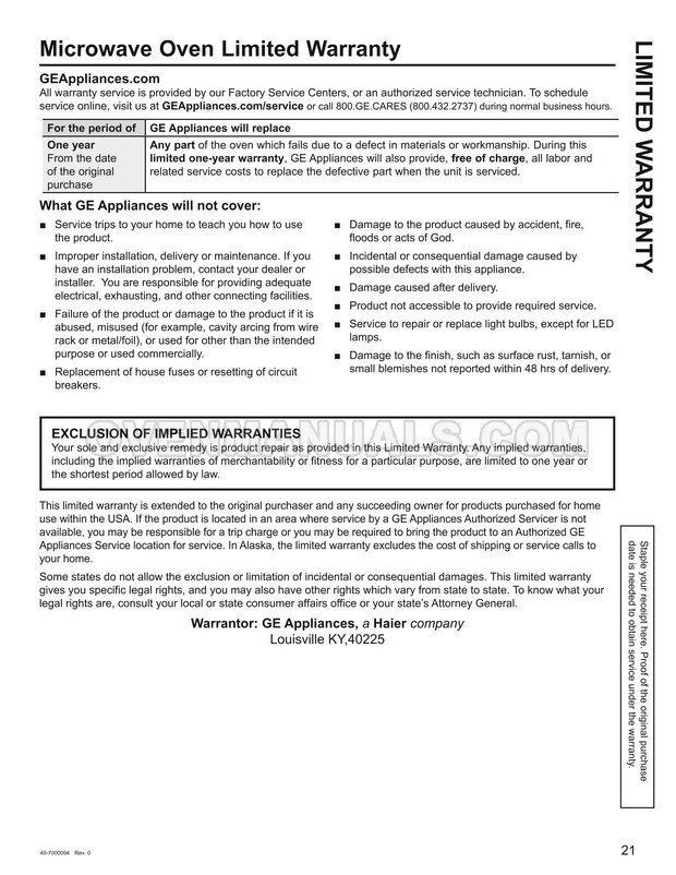 GE JVM6172SKSS Owner's Manual