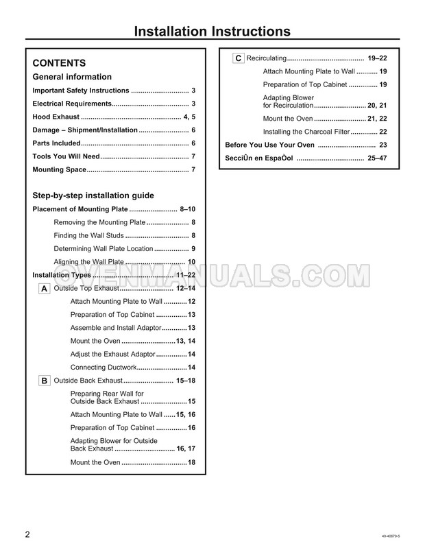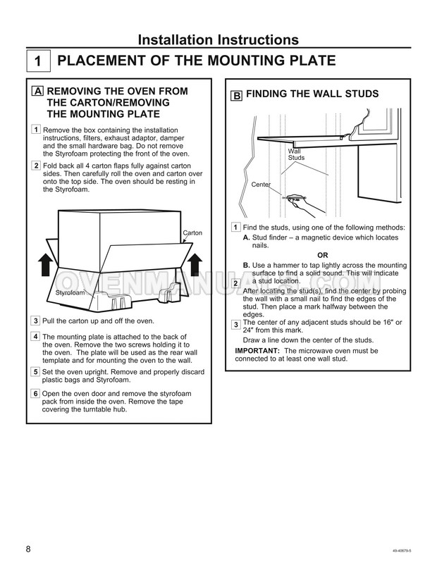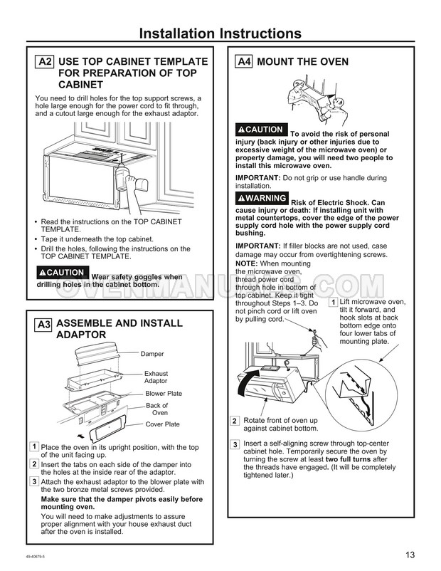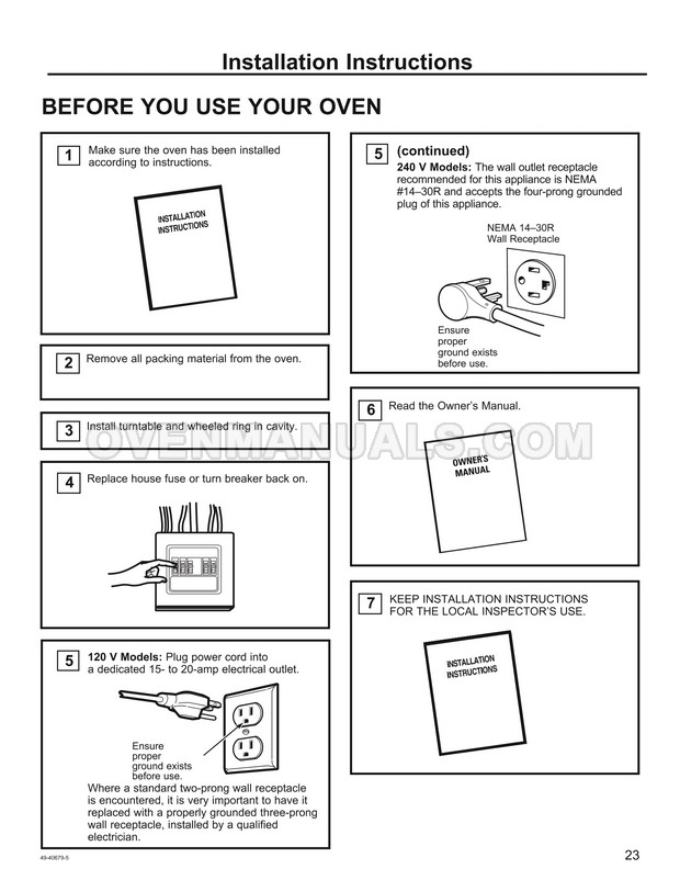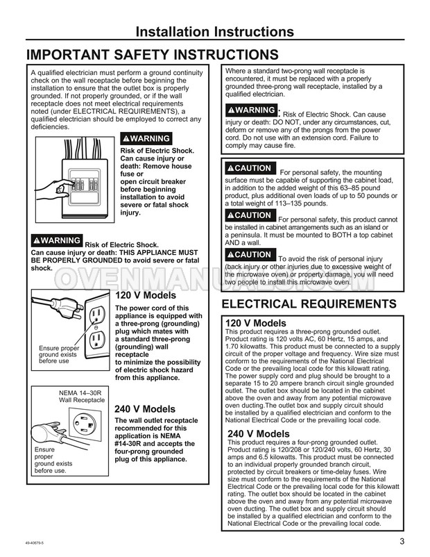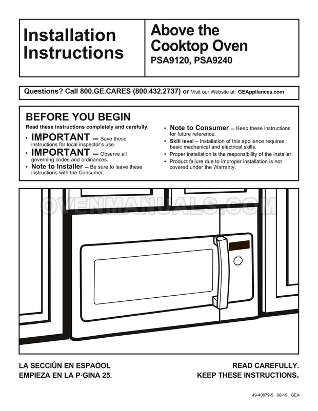 The GE PSA9240SFSS Profile Series microwave oven is an essential kitchen tool. Read the installation instructions for the correct connection of your new cooking appliance after purchasing stainless steel 30 inch over-the-range oven with Advantium technology.