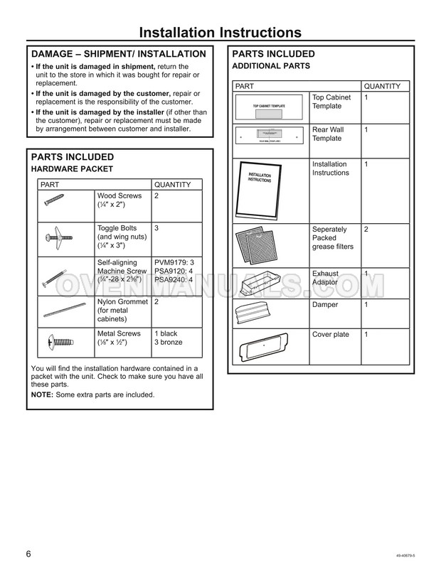 GE PSA9240SFSS Installation Instructions