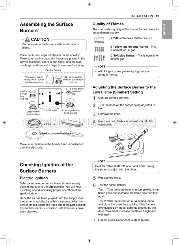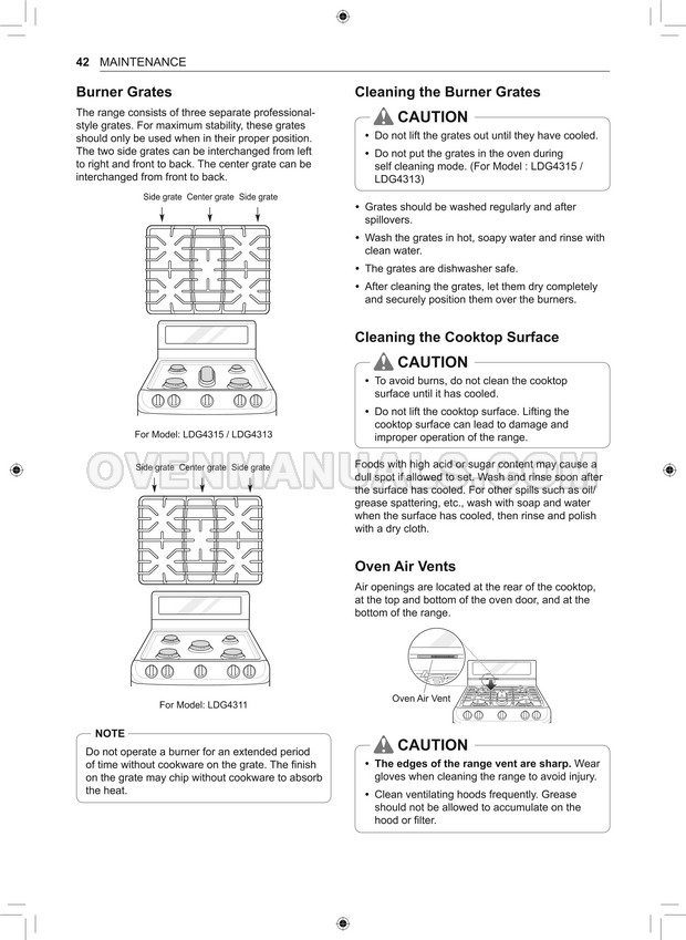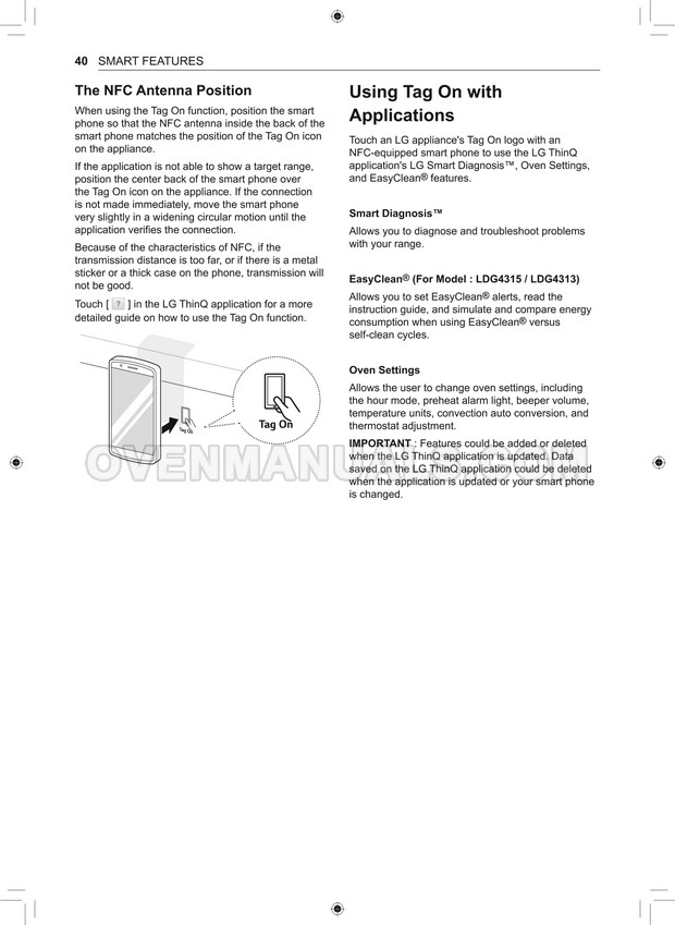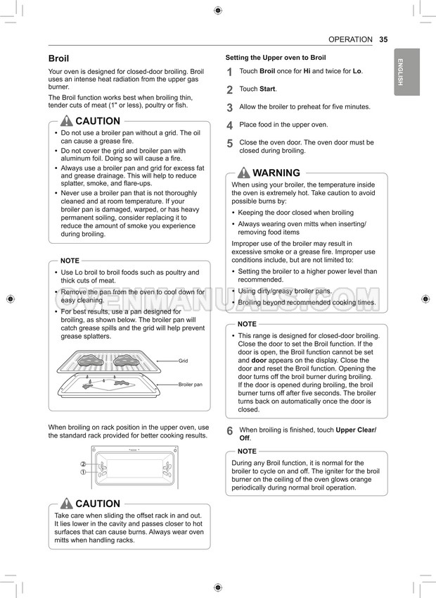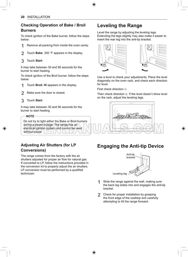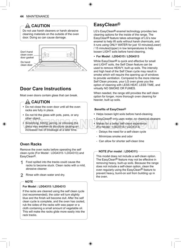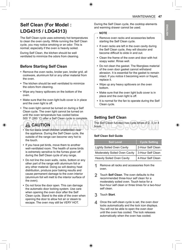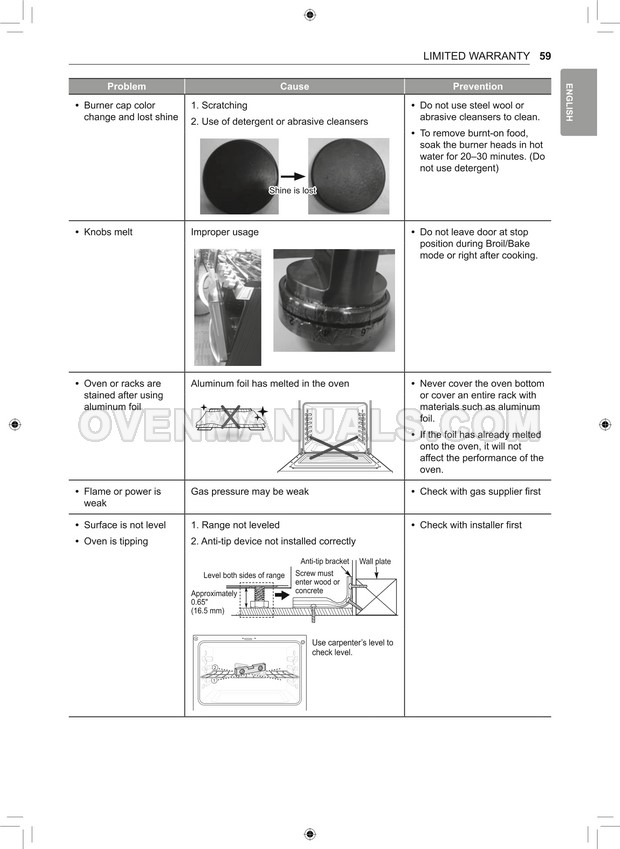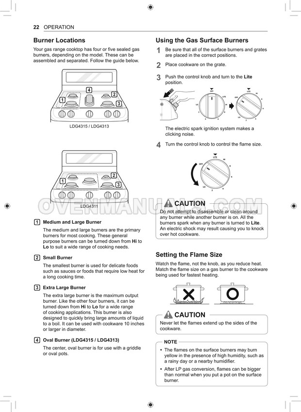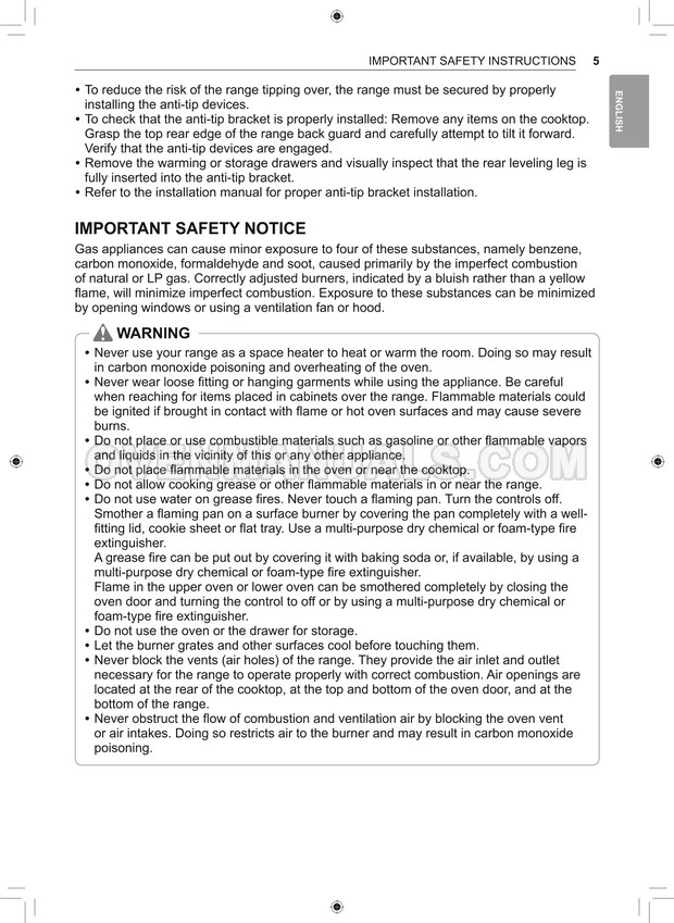 Use all the features of stainless steel 6.9 cu. ft. capacity ProBake Convection EasyClean double oven gas range with 5 burners. Read the owner's manual with recommendations from LG for cooking with the LDG4313ST range on 63 pages.