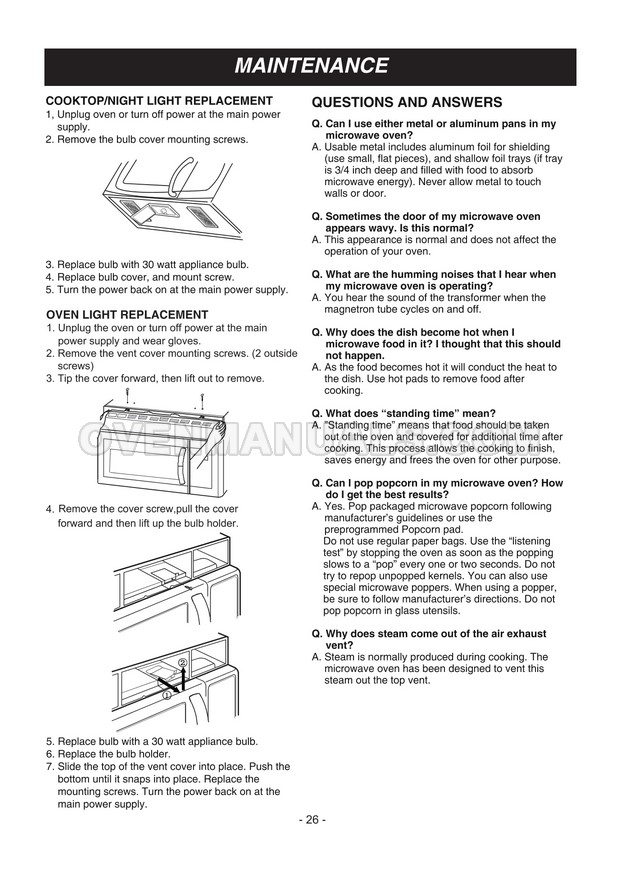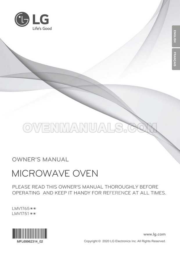 It is impossible to imagine a modern kitchen without a LG LMV1765ST microwave oven. The 39-page owner's manual in English will help you deal with the numerous functions and operation modes of the (LMV1765 models) over-the-range microwave oven.