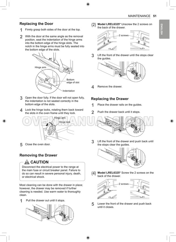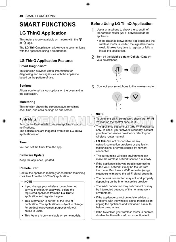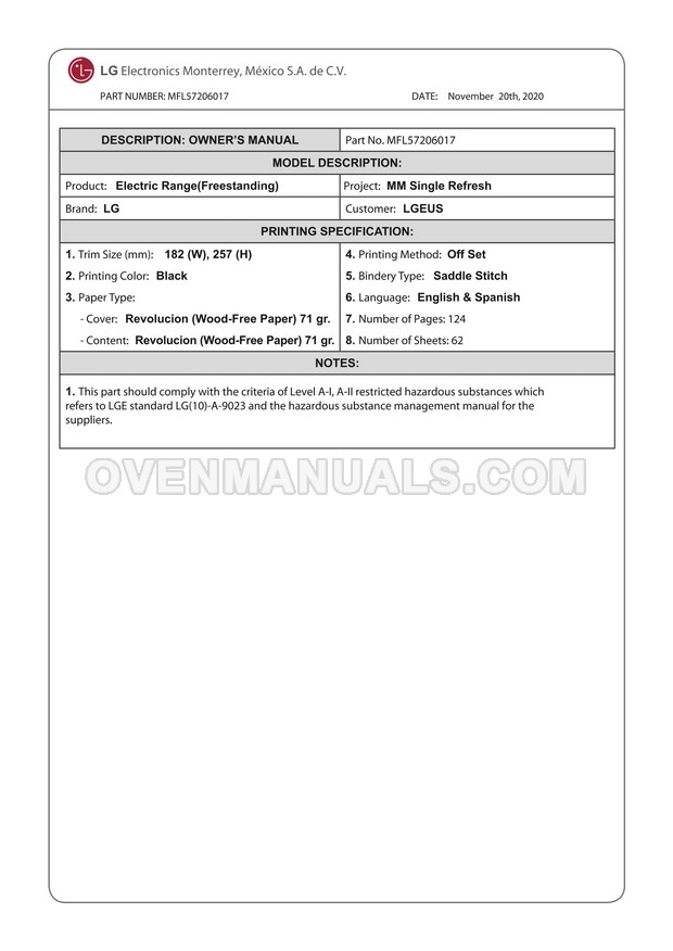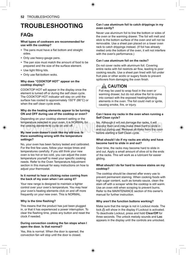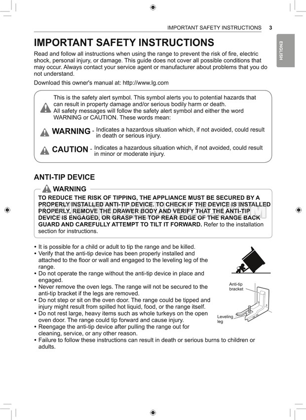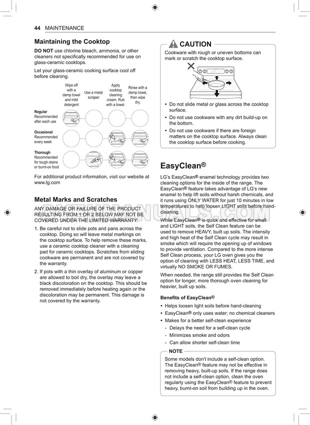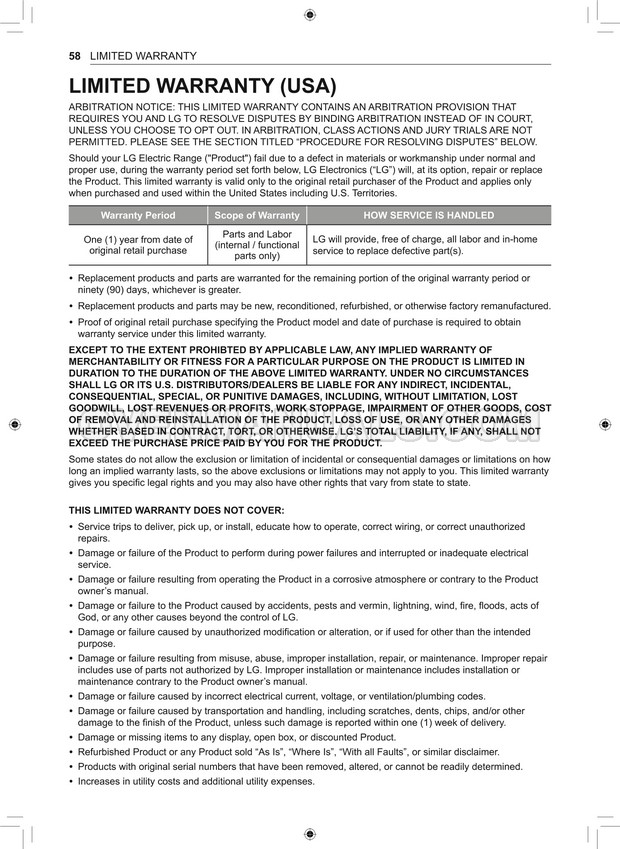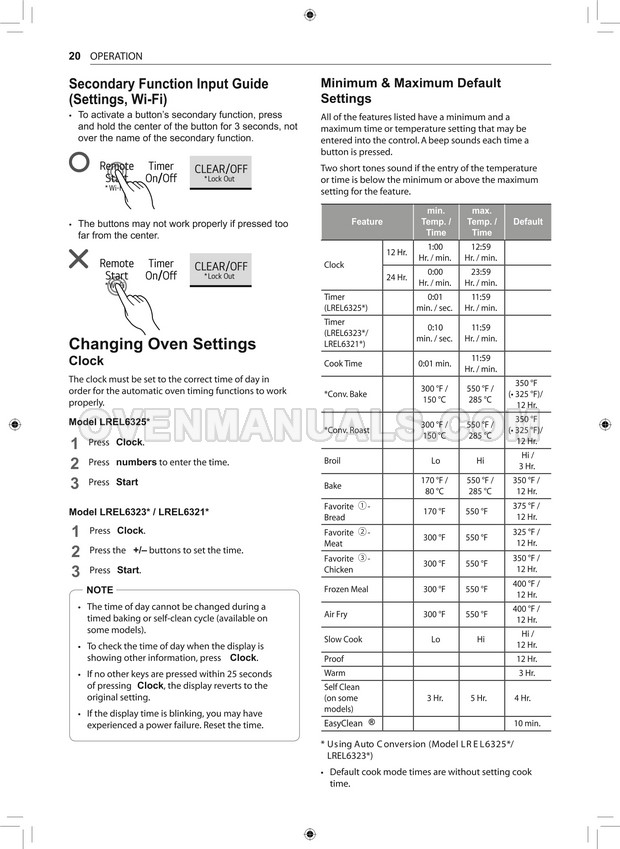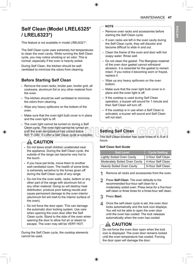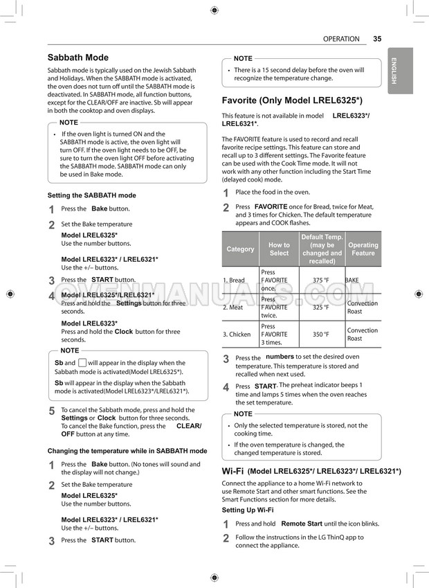 Read the manufacturer's recommendations for cooking with (LREL6321 models) 6.3 cu ft. EasyClean ThinQ Care Smart Wi-Fi electric range. This 64 page owner's manual describes all operating modes and features of the LG LREL6321S kitchen range.