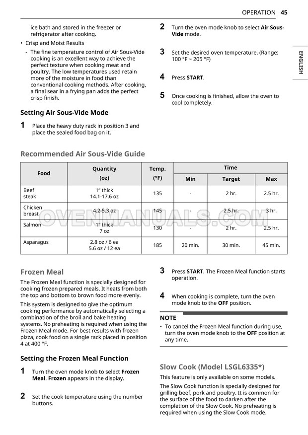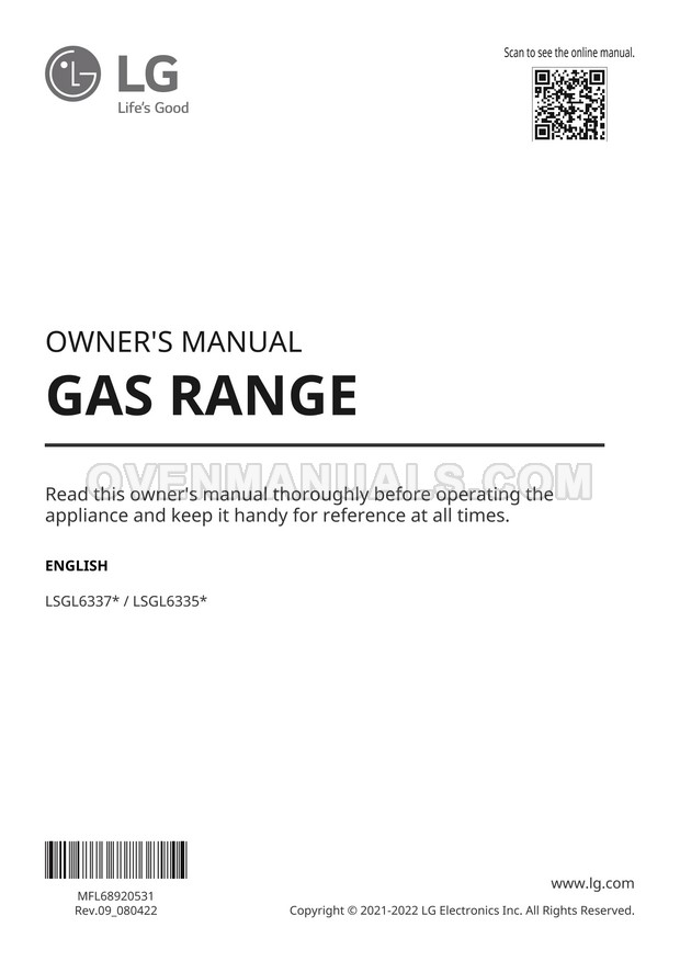 Use all the features of Smart Wi-Fi 30" width slide-in ThinQ gas range with self-clean oven. Read the owner's manual with recommendations from LG for cooking with the LSGL6337F range on 84 pages.