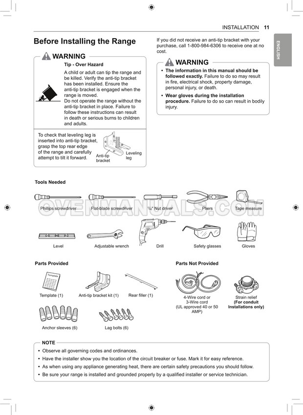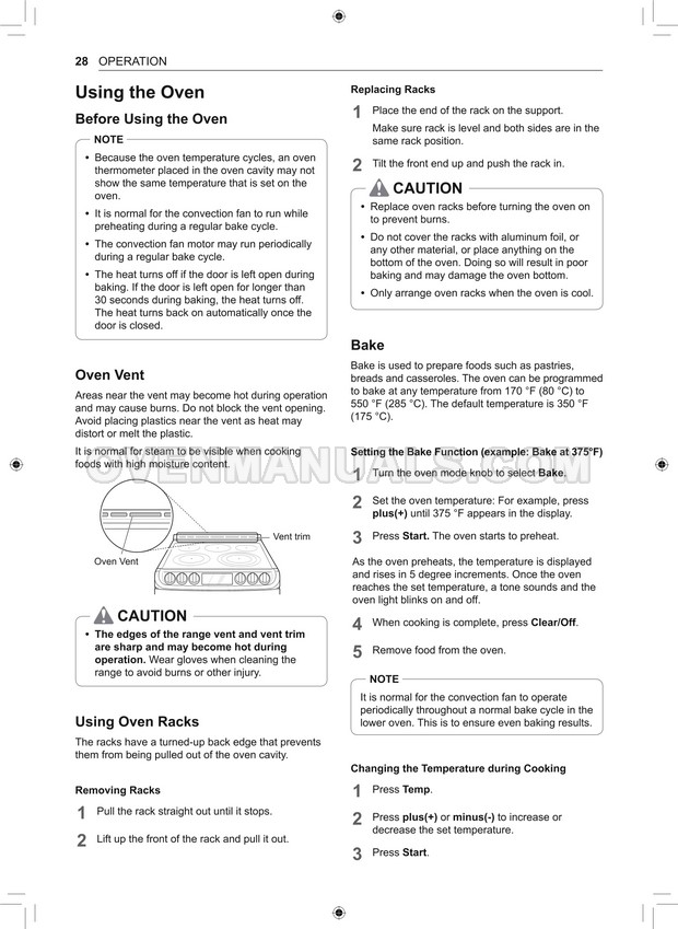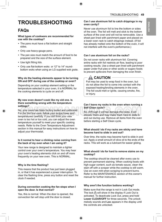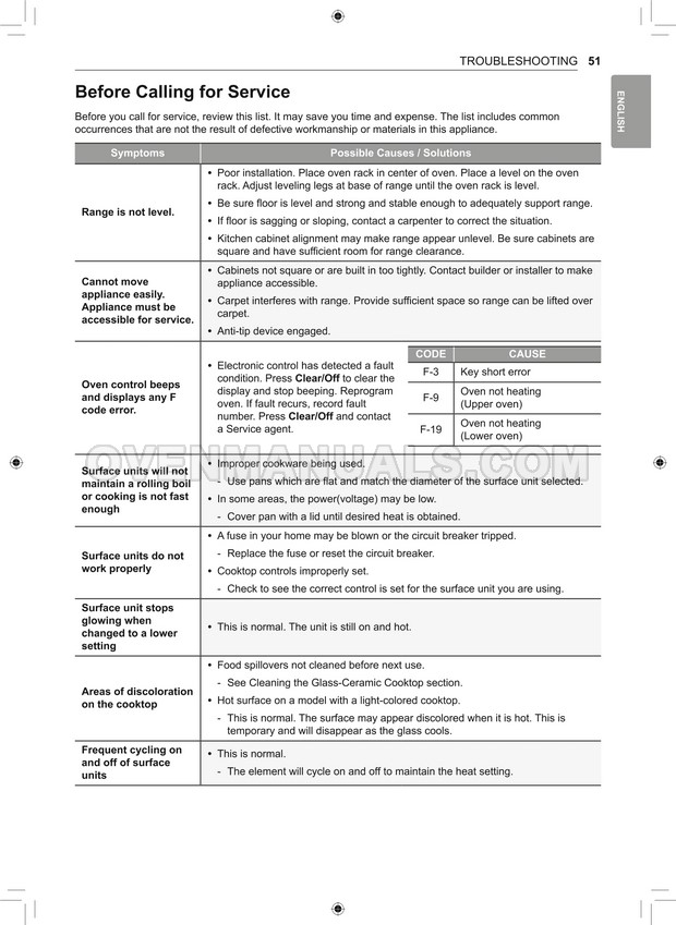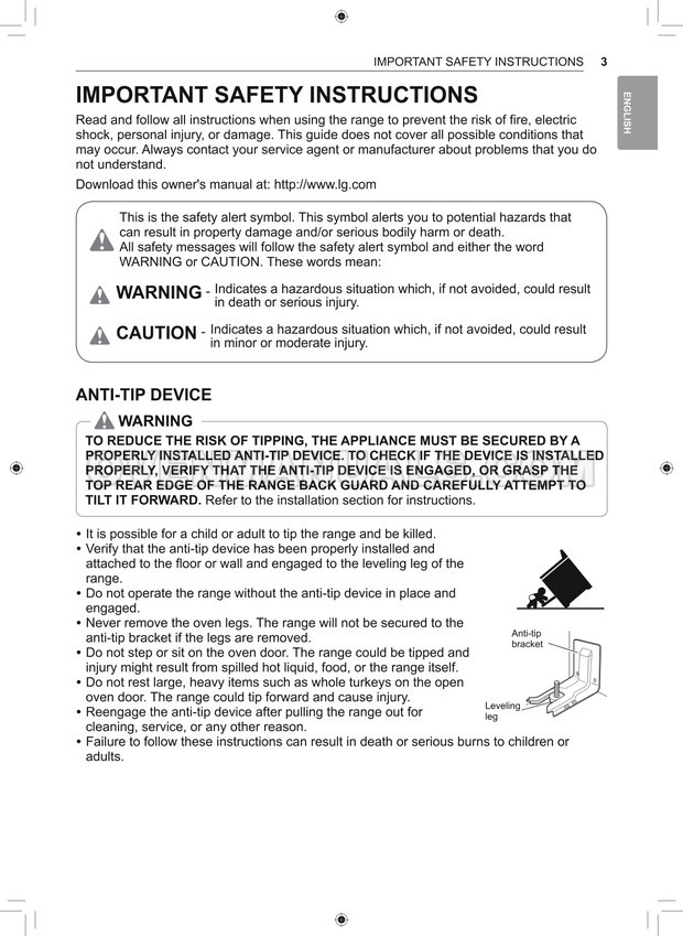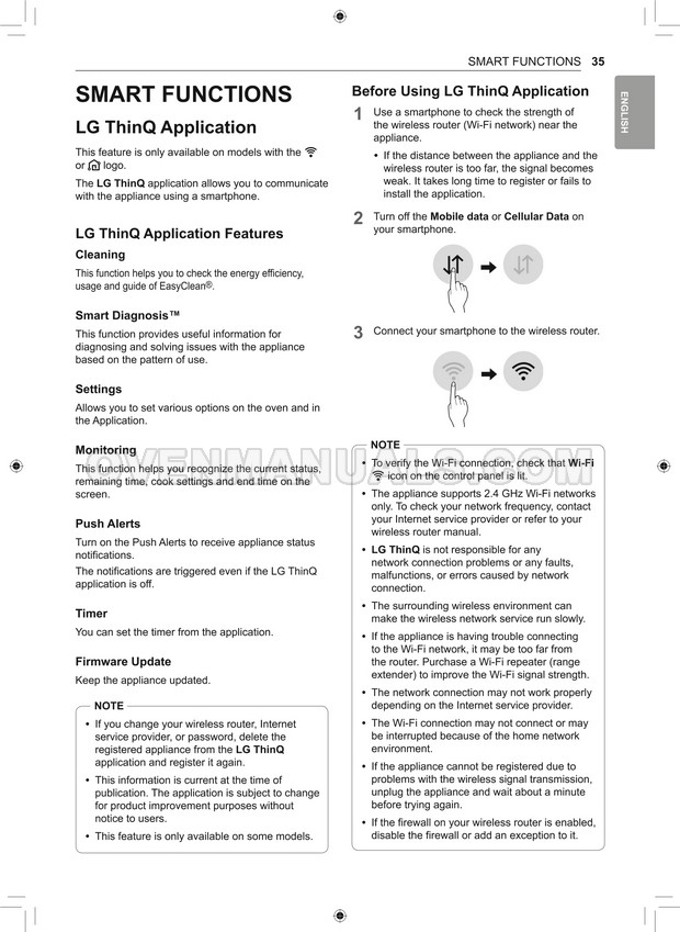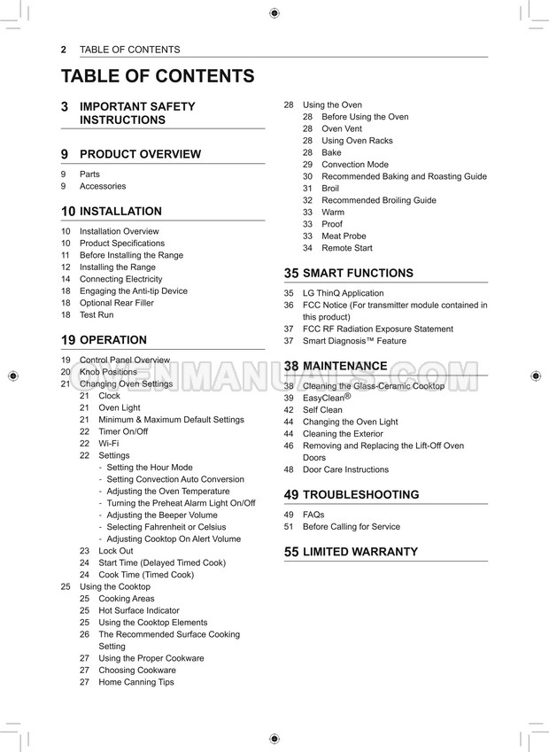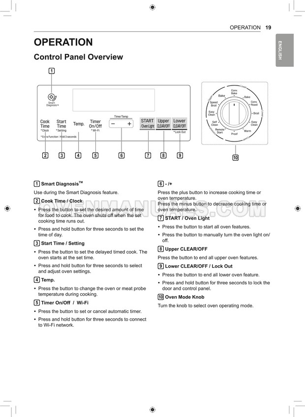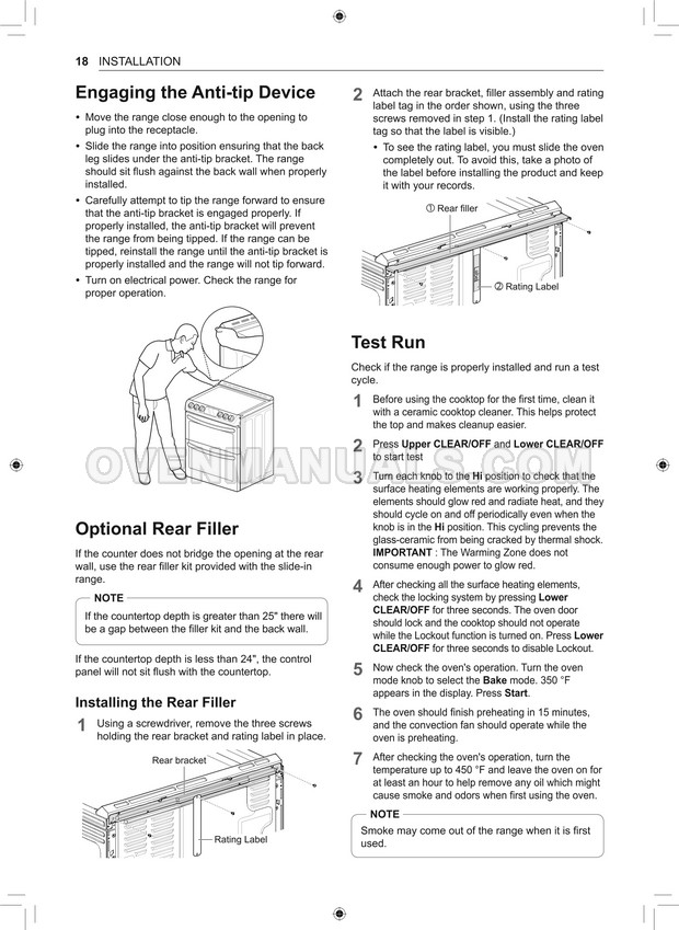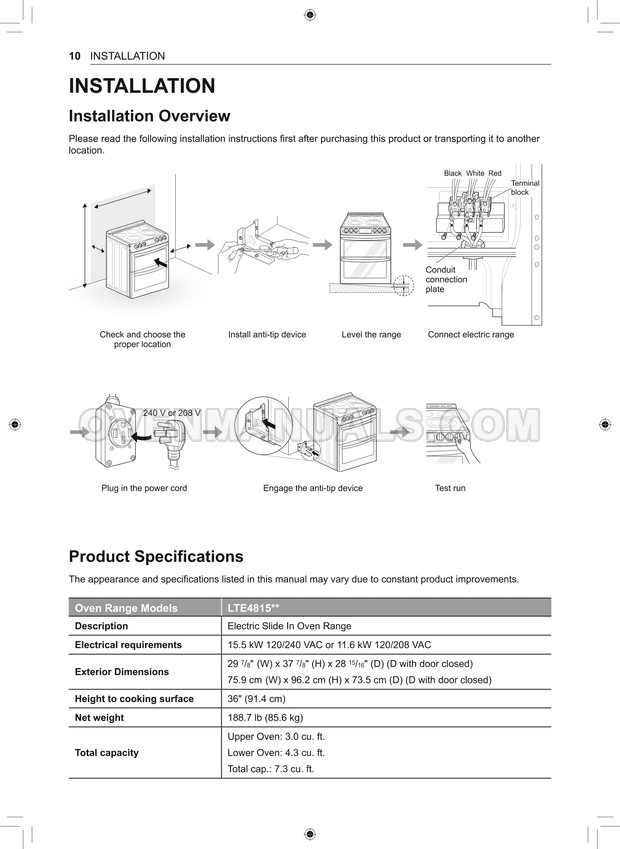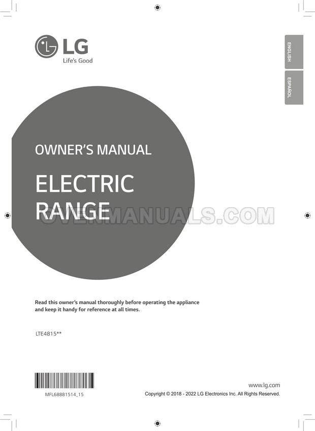 The owner's manual for 7.3 cu. ft. Smart wi-fi electric double oven slide-in range with ProBake Convection and EasyClean describes the operating modes, connection and maintenance requirements. Follow the manufacturer's recommendations and LG LTE4815ST range will remain great kitchen appliance for a long.