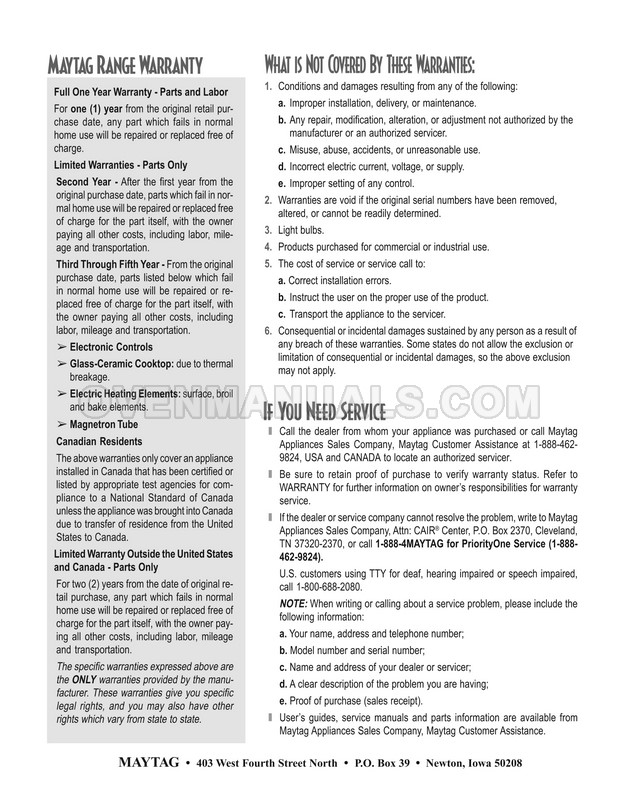 Maytag MER6750AAC User's Guide