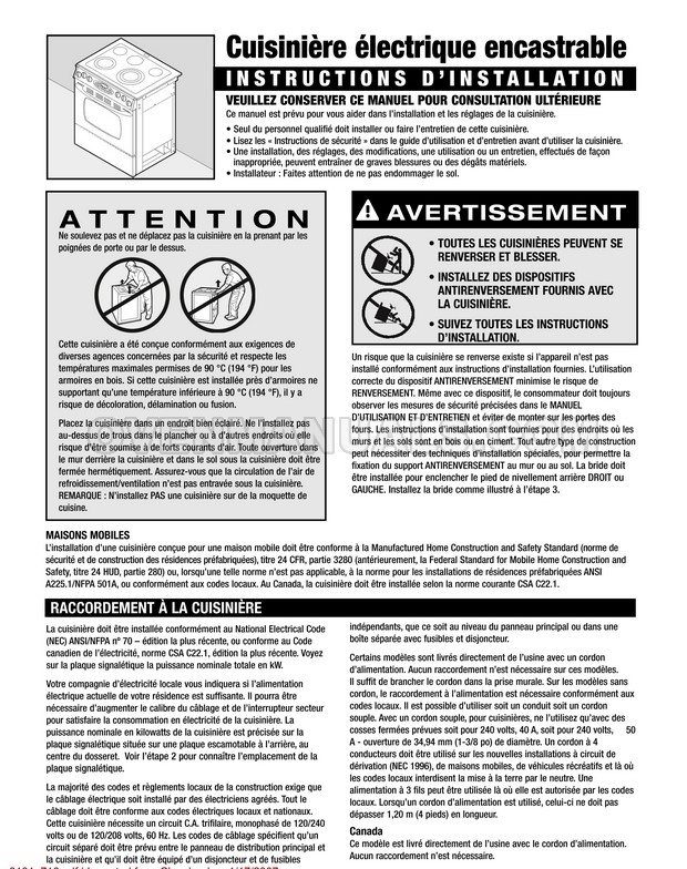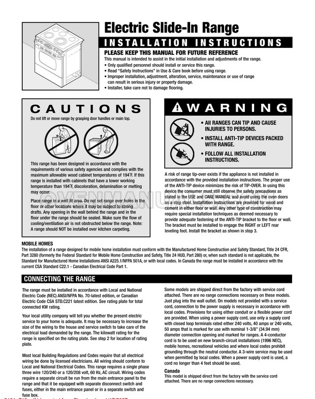 Read the installation instructions after purchase to ensure that the Maytag MES5775BAB range serves for a long time without breakdowns. This document contains all the necessary information for the correct installation and connection of a 30" slide-in electric range with 5 radiant elements (incl. Triple-Choice) and 4.5 cu. ft. self-clean oven.