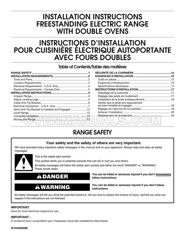 The Maytag MET8800FZ range has many useful features and settings. Proper connection of the device is essential. Follow the installation instructions for the initial setup and maintenance of the Precision Cooking 30 inch 6.7 cu. ft. capacity convection double oven electric range.