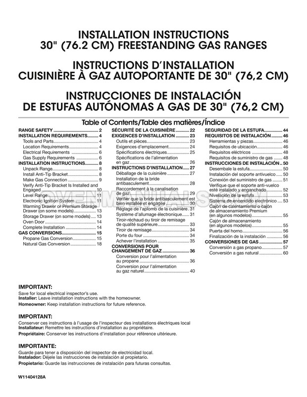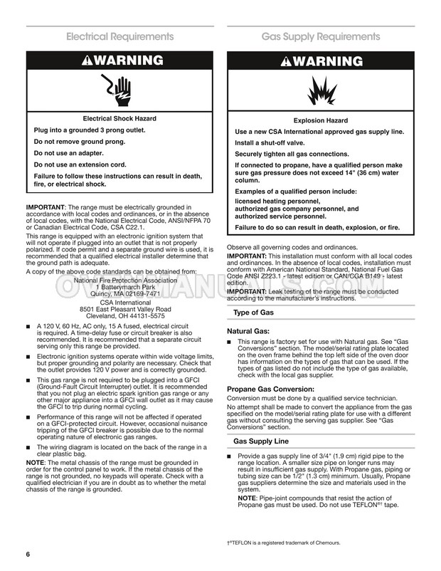 Read the installation instructions after purchase to ensure that the Maytag MGR6600FZ range serves for a long time without breakdowns. This document contains all the necessary information for the correct installation and connection of a 30 inch freestanding better built gas range with 5 burners stove, Keep Warm setting and High Temp self clean.