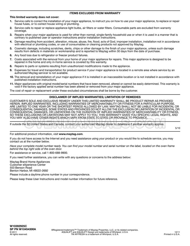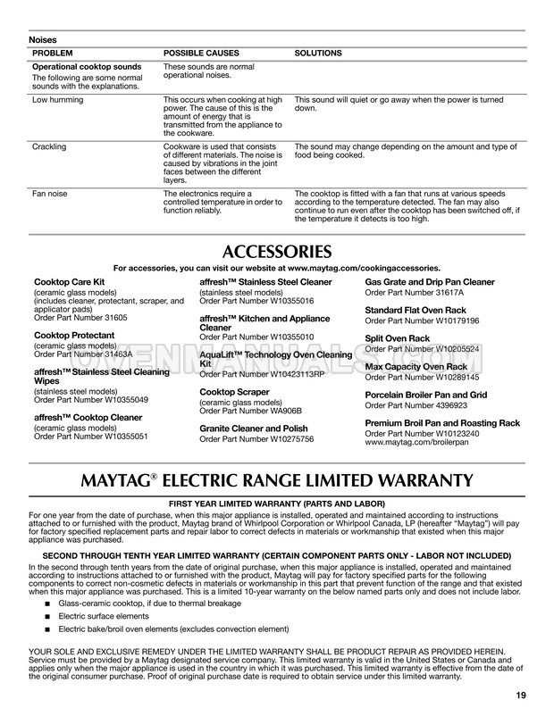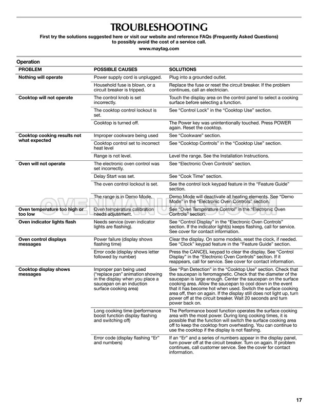 The user instructions for 30" freestanding induction range with 4 heating elements, 6.2 cu. ft. True Convection self-clean oven and warming drawer describes the operating modes, connection and maintenance requirements. Follow the manufacturer's recommendations and Maytag MIR8890AS range will remain great kitchen appliance for a long.