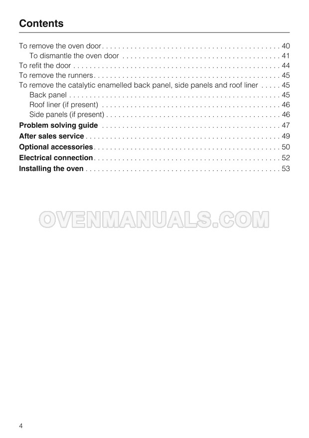 Read the 56 page operating and installation instructions before using the 56l integrated self cleaning single fan oven with side runners with four shelf levels. This will avoid breakdowns, non-warranty repairs and extend the life of the Miele H4312B.
