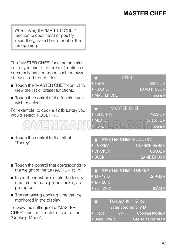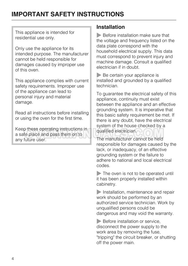 These operating and installation instructions contain the manufacturer's recommendations for a integrated 30" electric double wall oven with Sabbath mode, European Convection system and System Lock. Proper installation will avoid problems in the operation of the Miele H4890BP2 Master Chef.