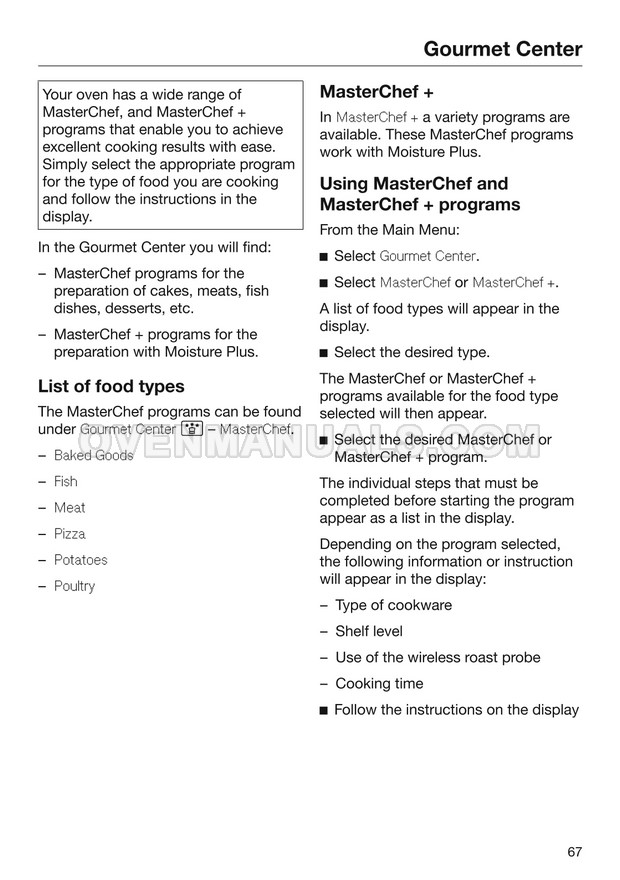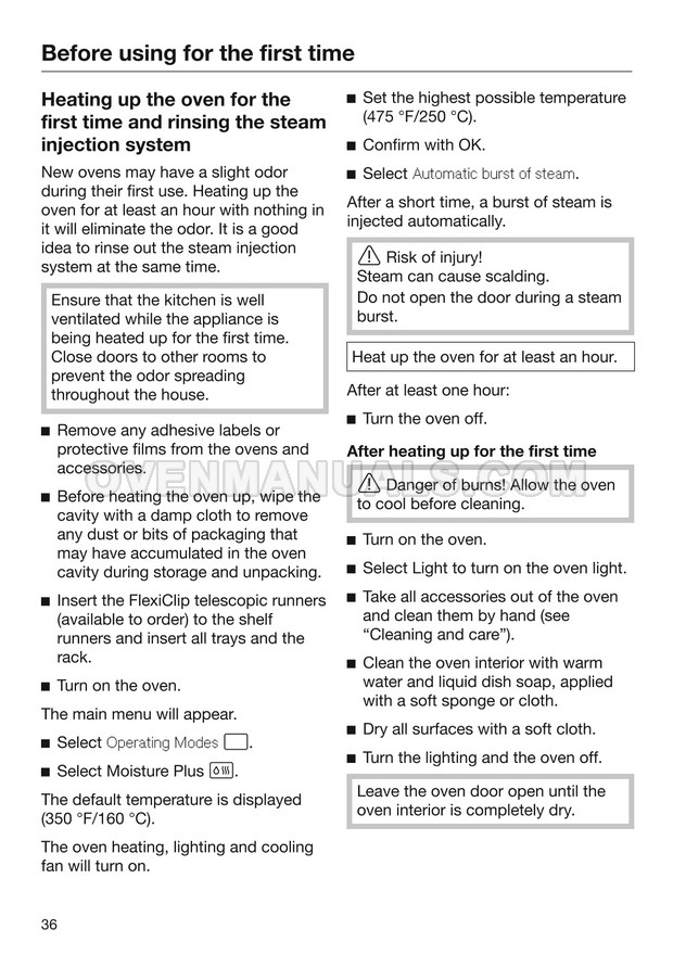 Read the 160 page operating and installation instructions before using the 30" convection electric oven with steam burst and MasterChef program for 100 plus recipes. This will avoid breakdowns, non-warranty repairs and extend the life of the Miele H6880BP M-Touch PureLine.