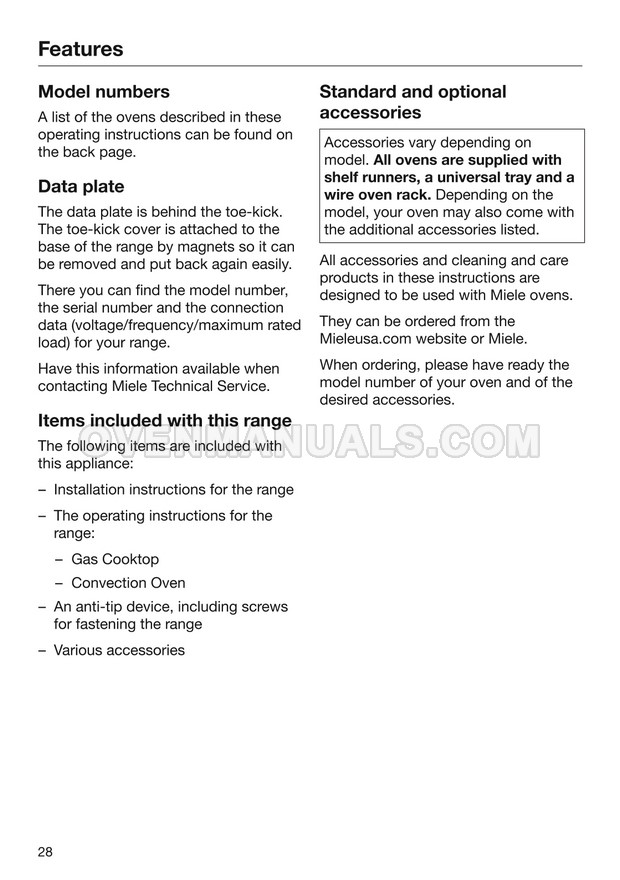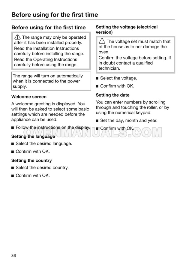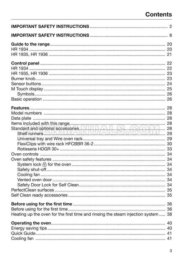 Use all the features of 36" dual fuel range freestanding cooker. Read the operating instructions with recommendations from Miele for cooking with the HR 1936 G range on 140 pages.