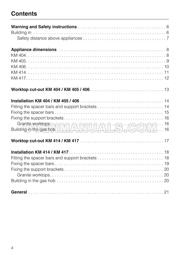 Miele KM 405 Installation Instructions