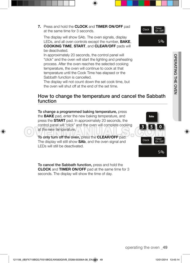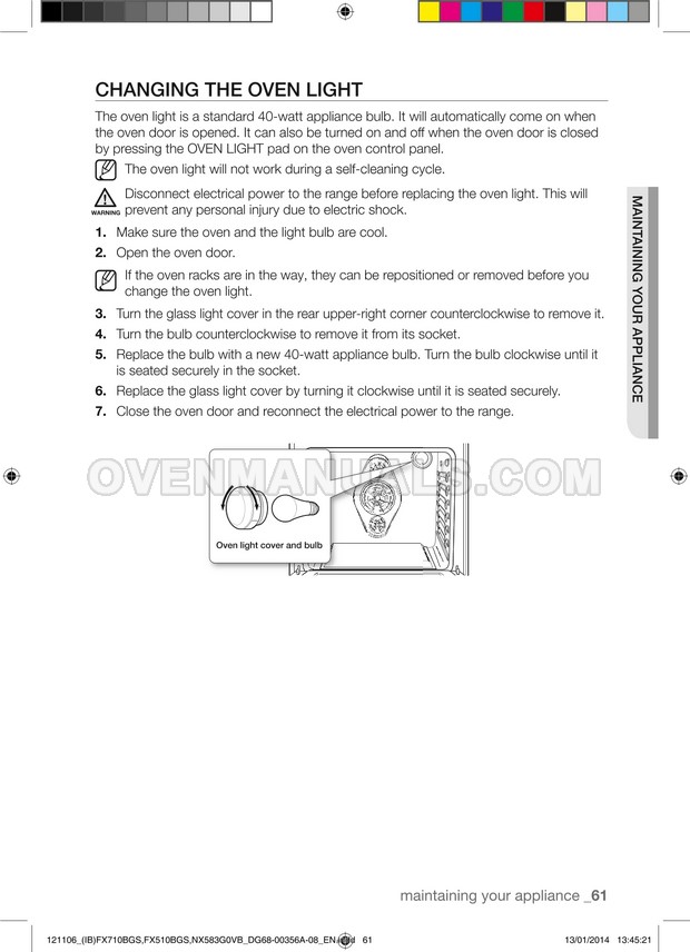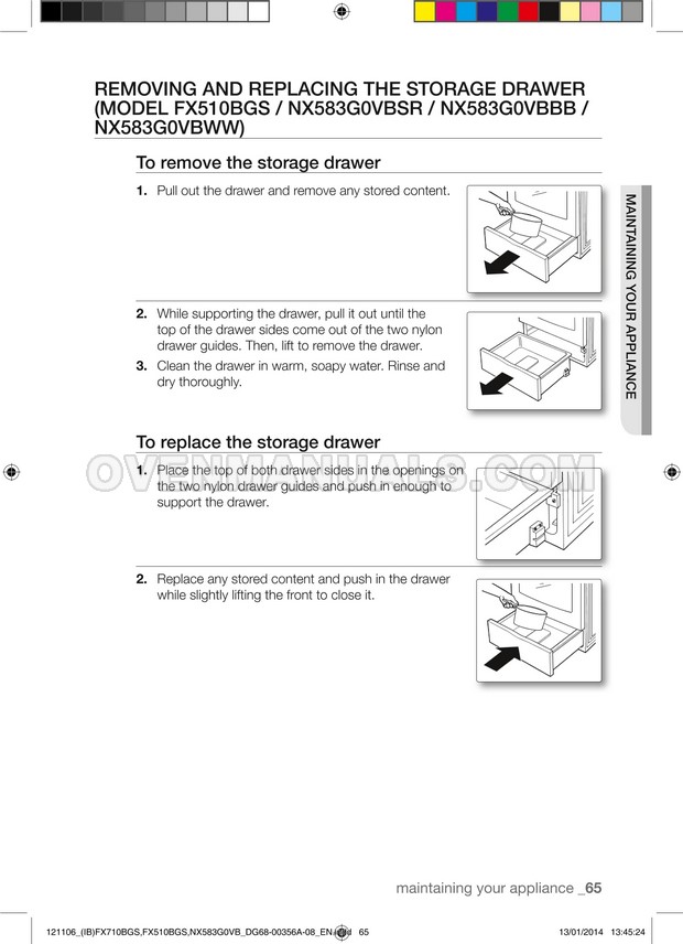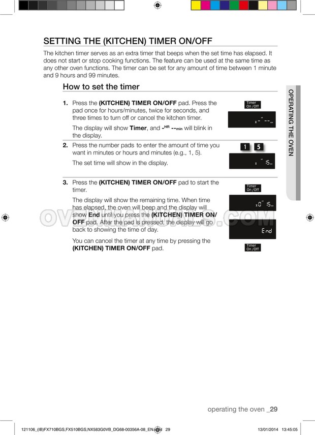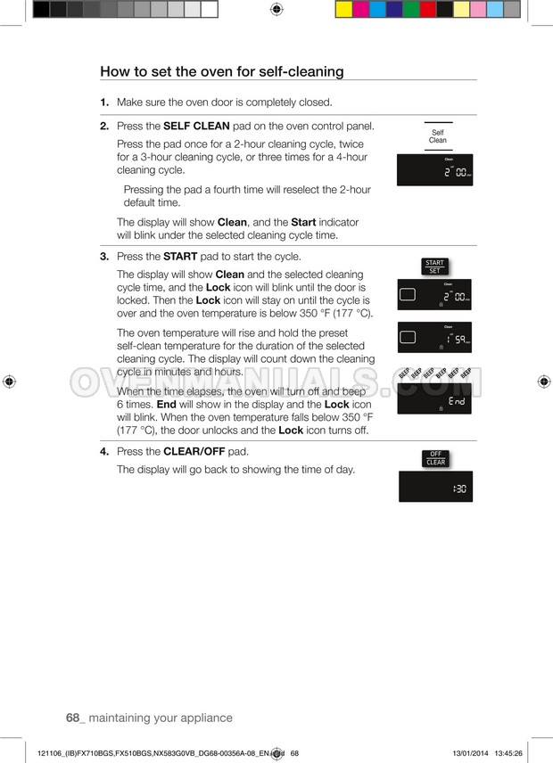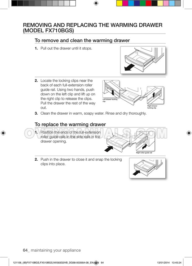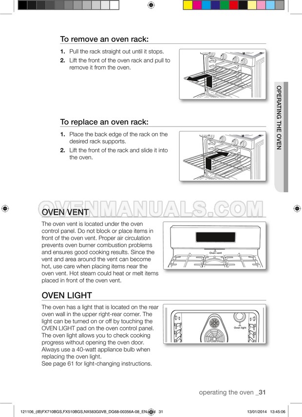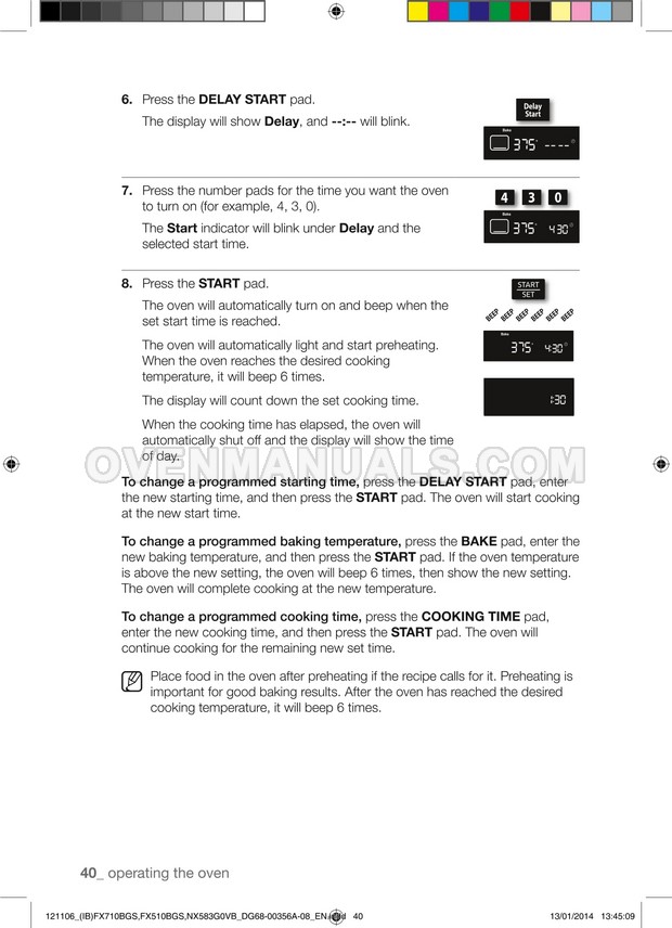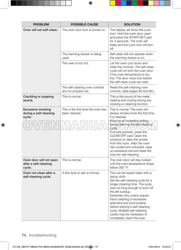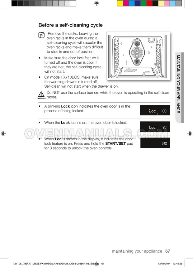 Read the manufacturer's recommendations for cooking with 30 inch freestanding gas range with 5 sealed burners, 5.8 cu.ft. gas convection oven, self-clean, 4 preset menu options, proofing and storage drawer. This 80 page user manual describes all operating modes and features of the Samsung FX510BGS kitchen range.