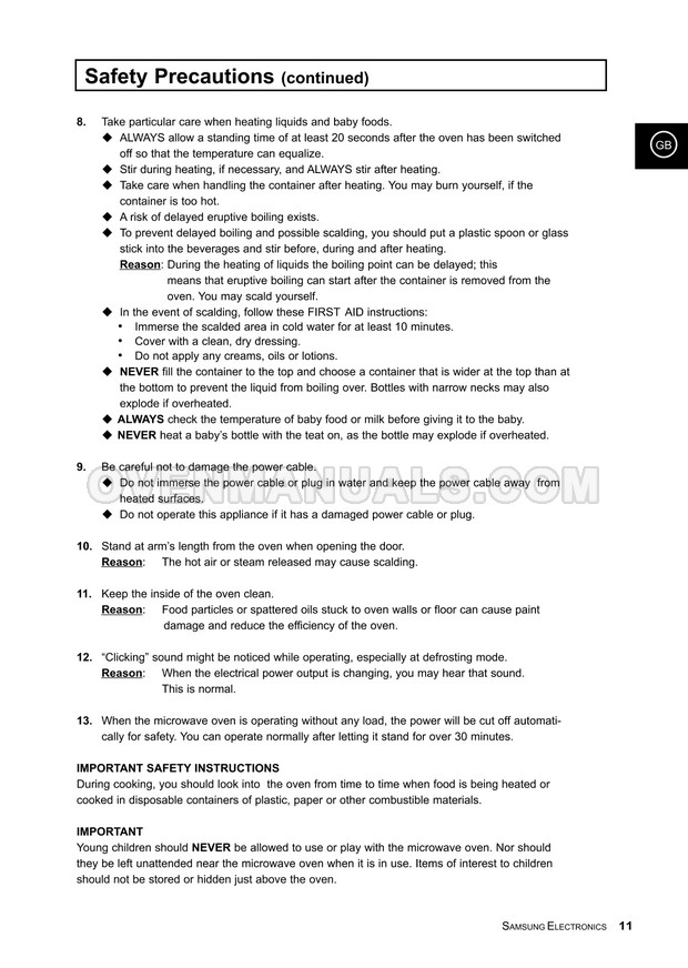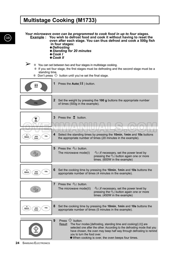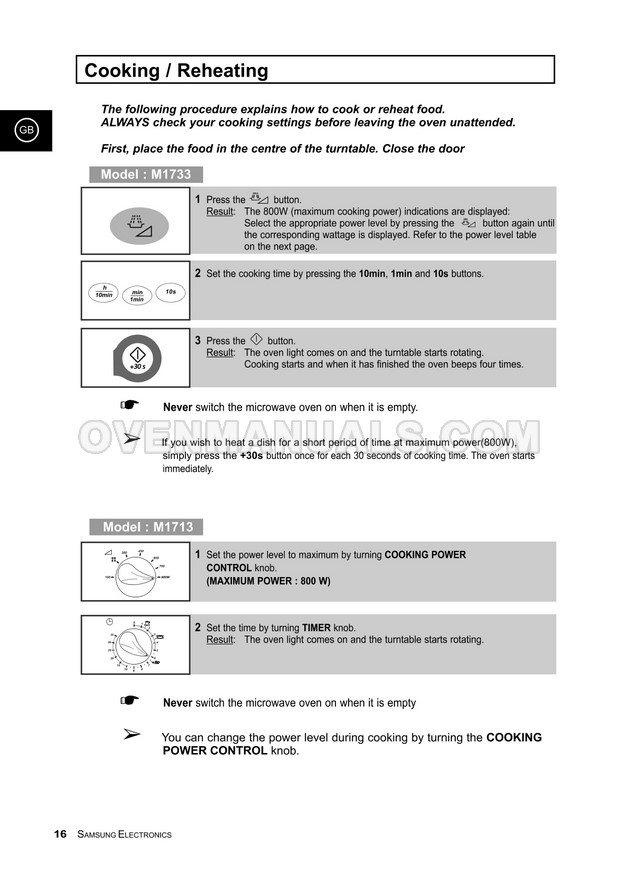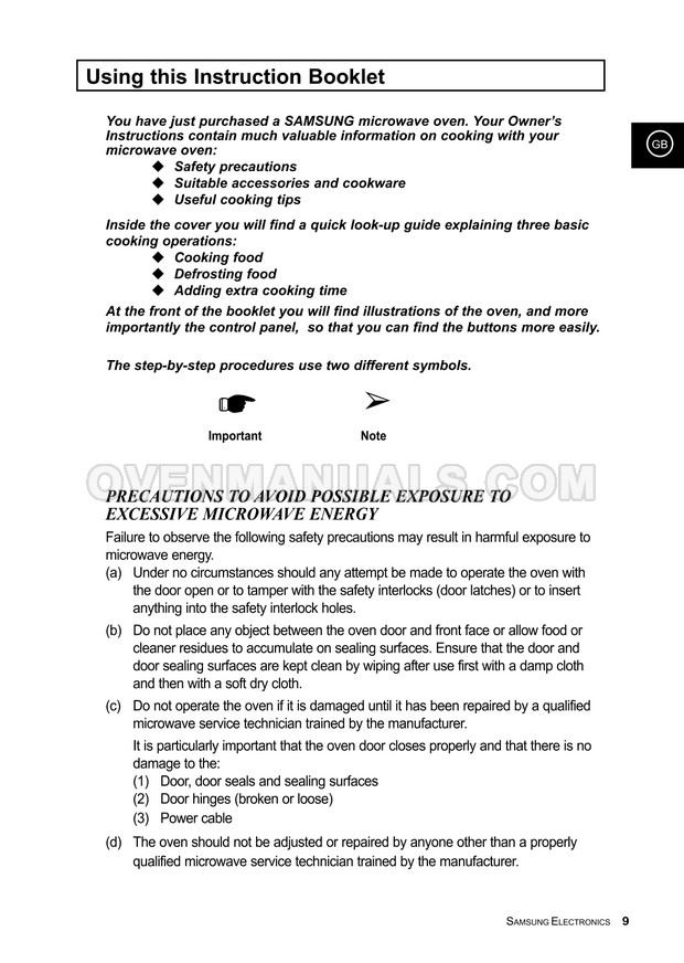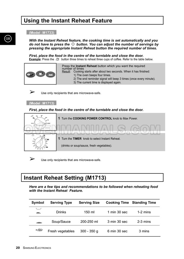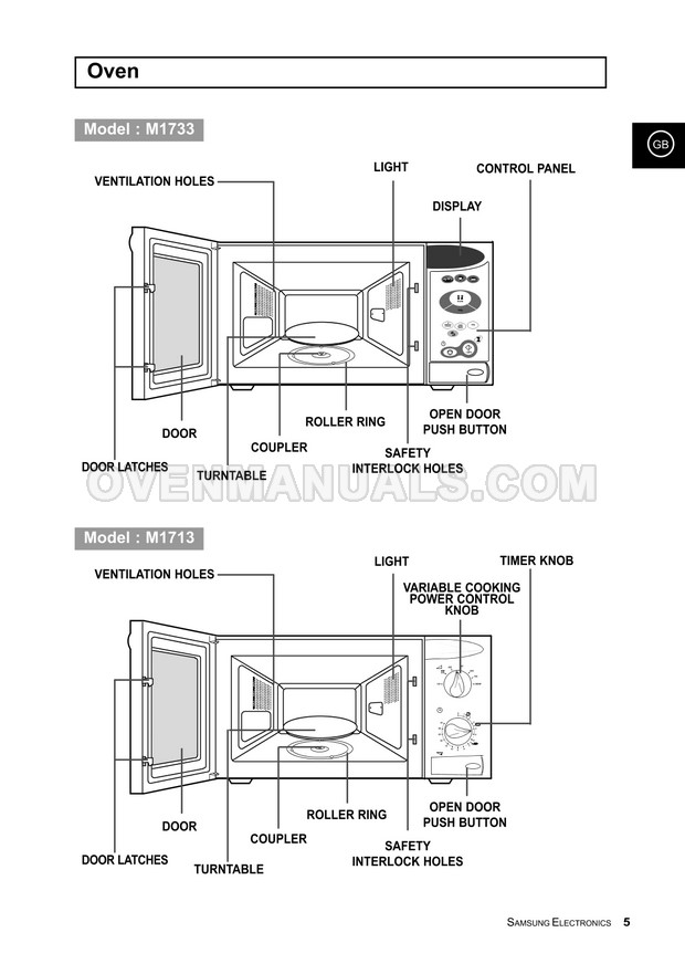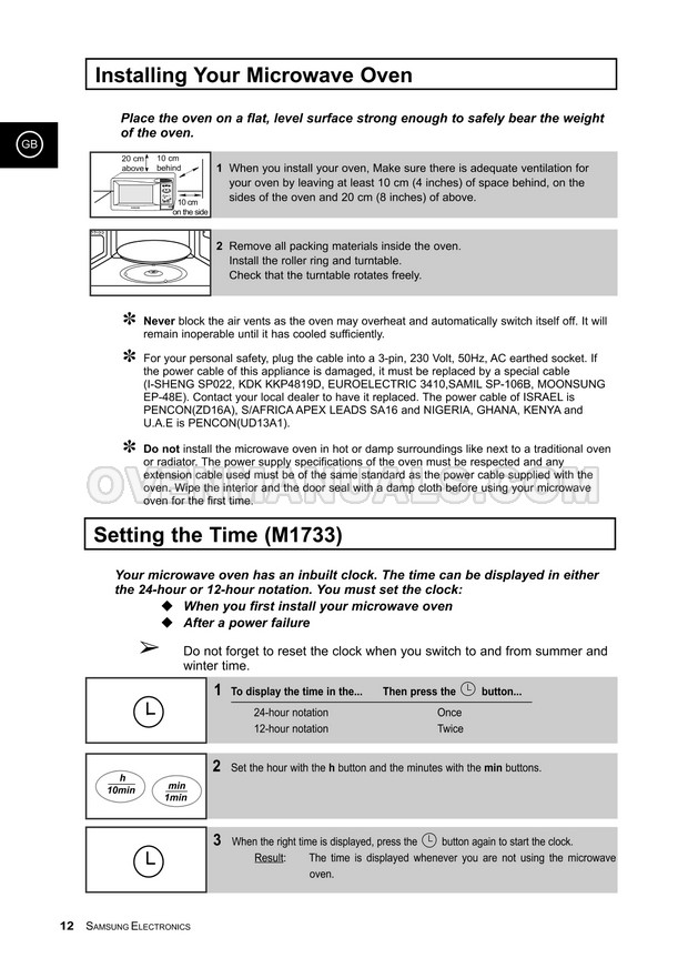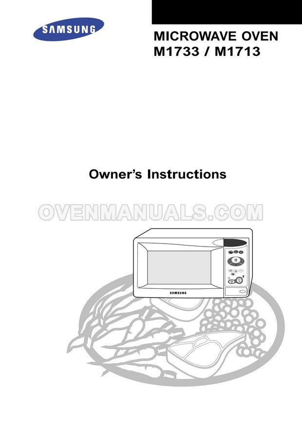 It is impossible to imagine a modern kitchen without a Samsung M1733CE Timesaver microwave oven. The 36-page owner's instructions in English will help you deal with the numerous functions and operation modes of the 800W microwave oven with manual/auto defrost.