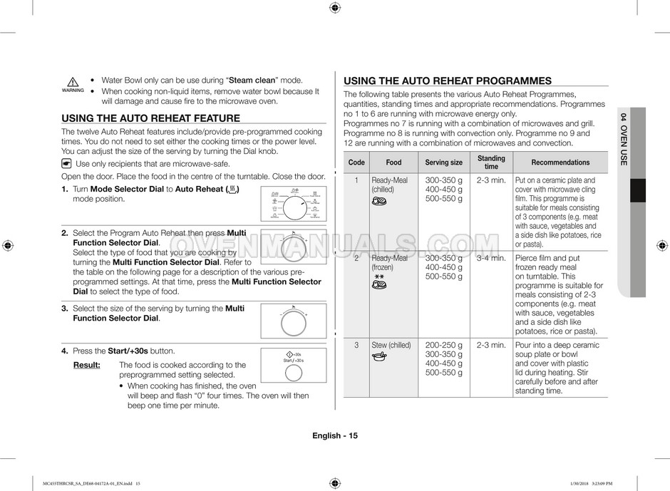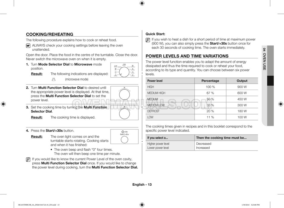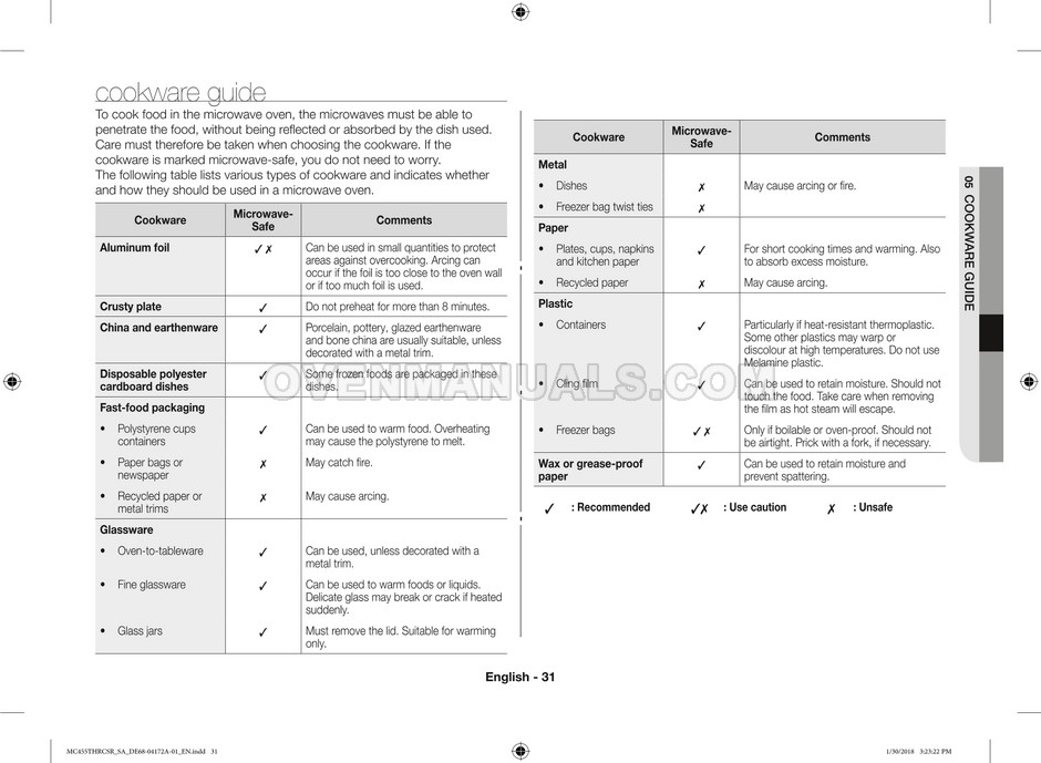 Samsung MC455THRCBB Owner's Instructions & Cooking Guide