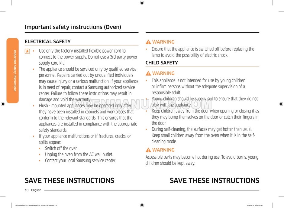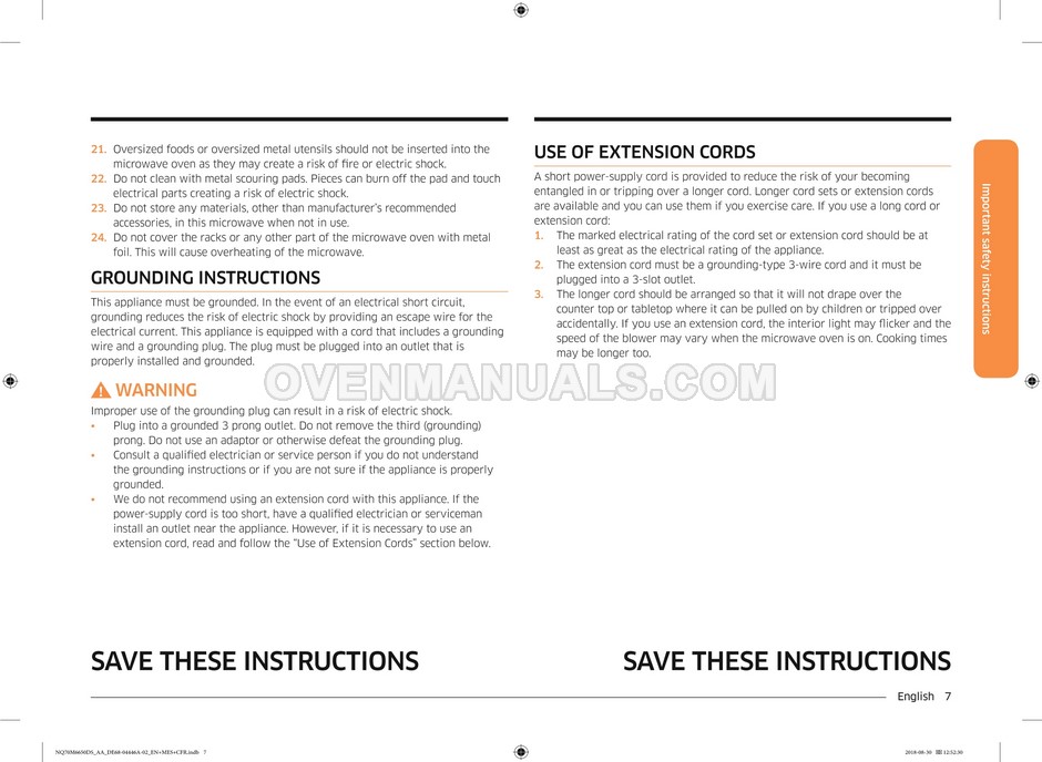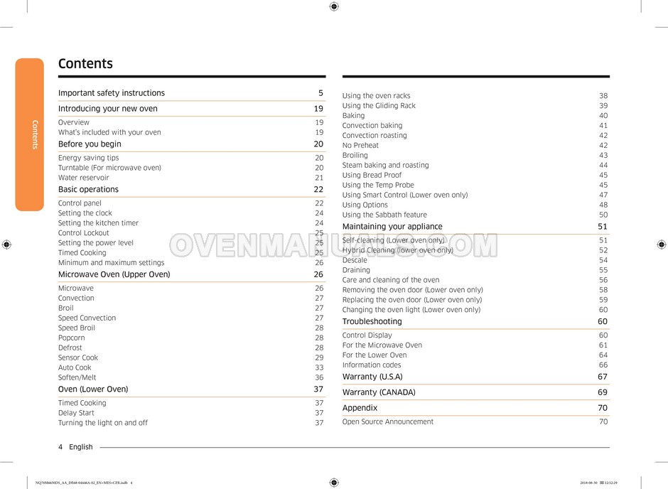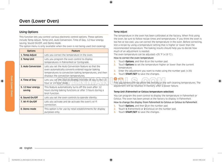 The durability of the Samsung NQ70M6650DS SmartThings oven largely depends on the correct settings and maintenance of the kitchen appliance. Read the 72 page user manual for important information about the 30 inch 7 cu.ft. electric wall smart combo oven with Wi-Fi, Dual Convection, steam cook, speed cook, guiding light controls.