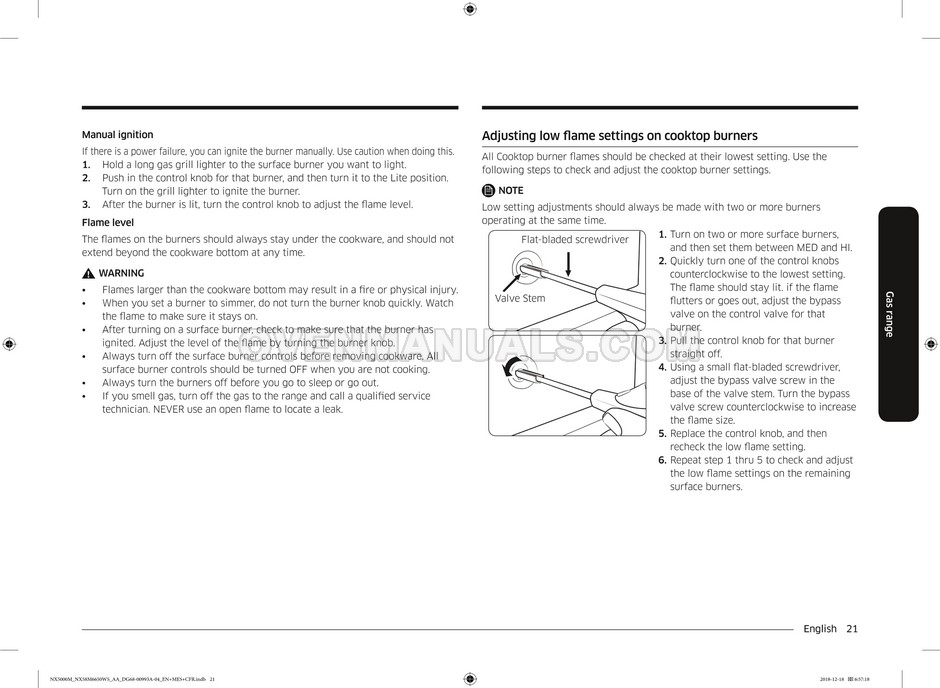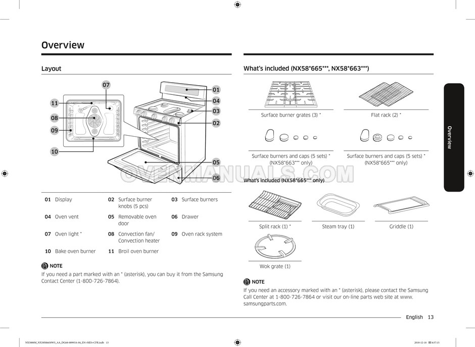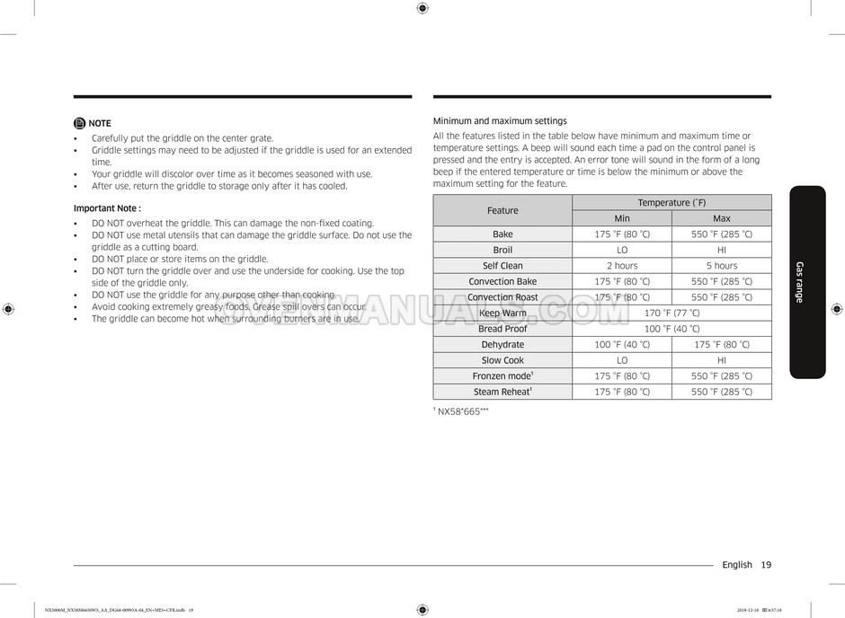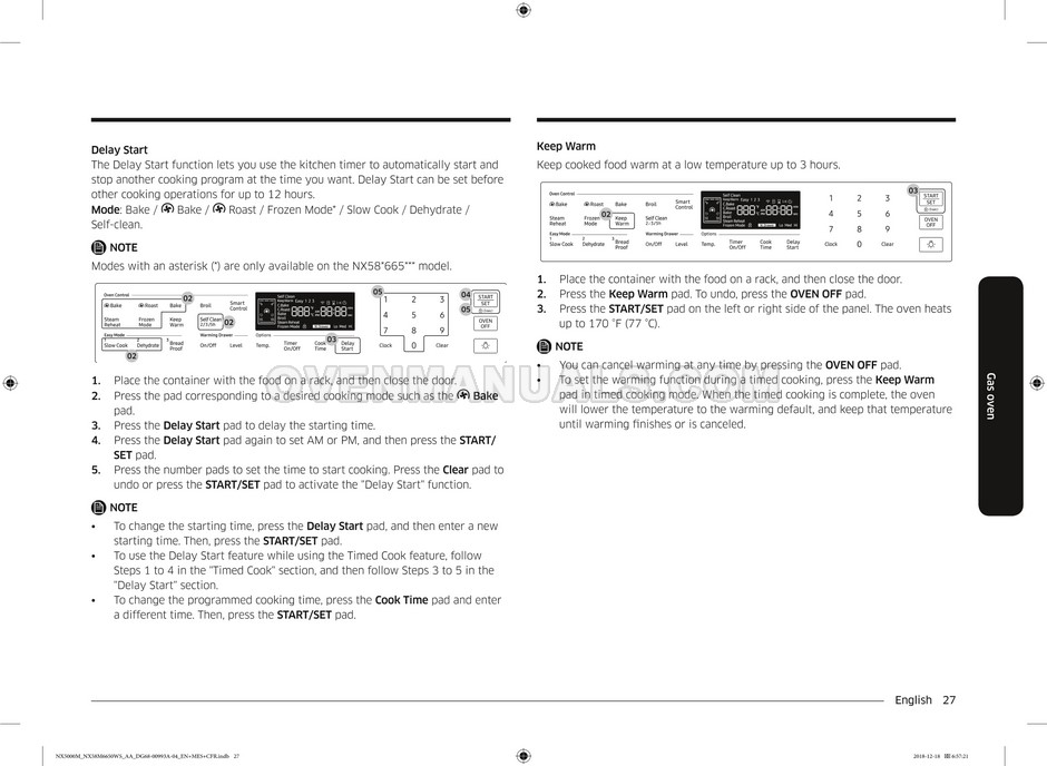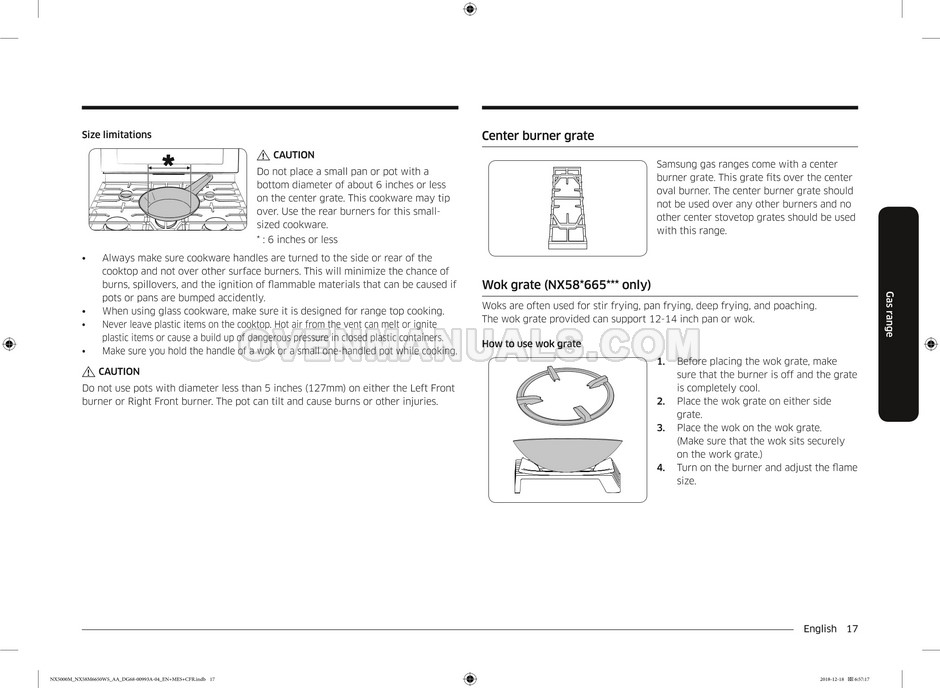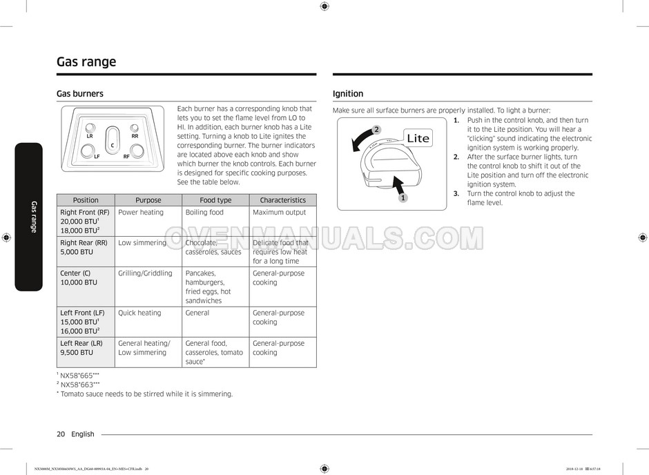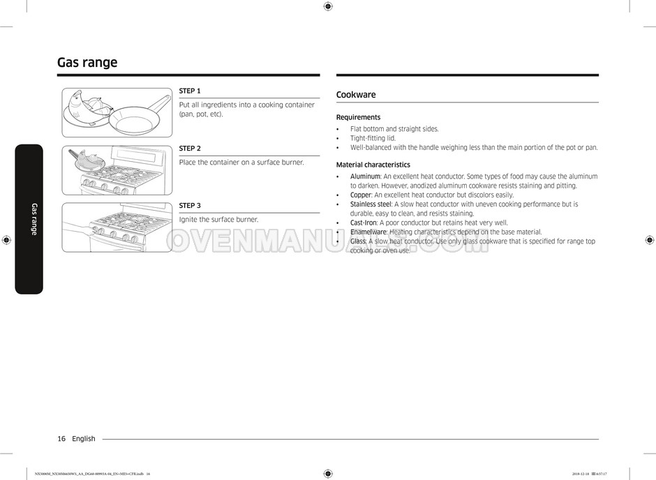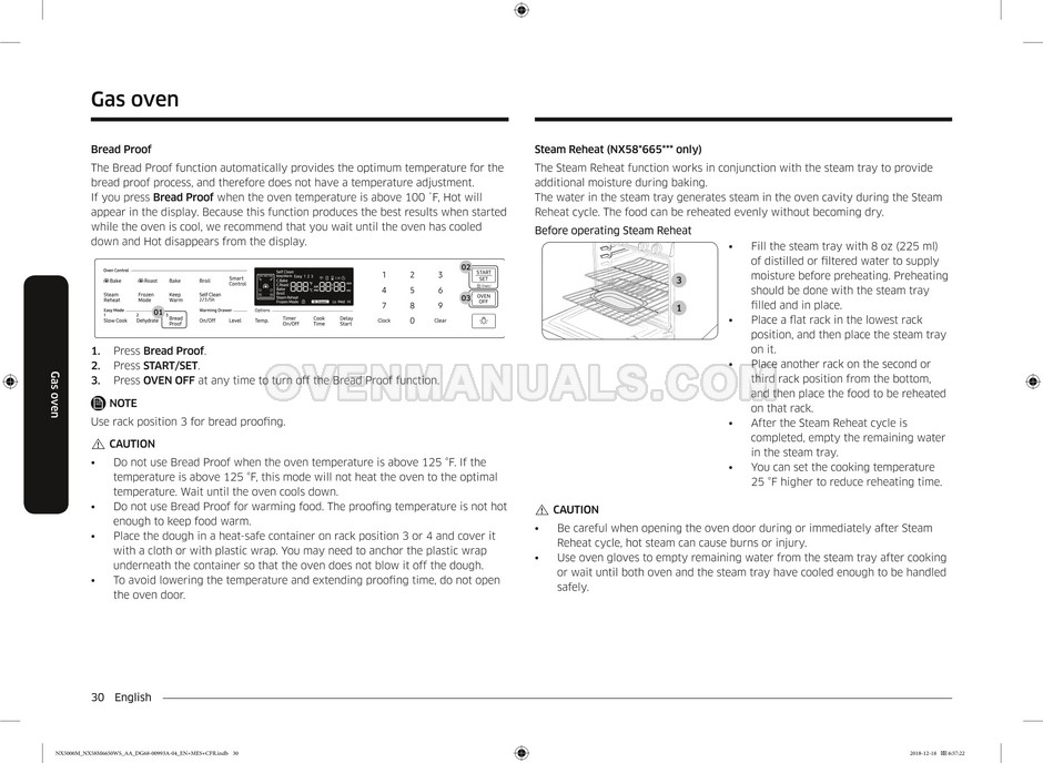 The user manual for 30 inch freestanding gas range with True Convection, dual power burner and steam reheat describes the operating modes, connection and maintenance requirements. Follow the manufacturer's recommendations and Samsung NX58M6650WS range will remain great kitchen appliance for a long.