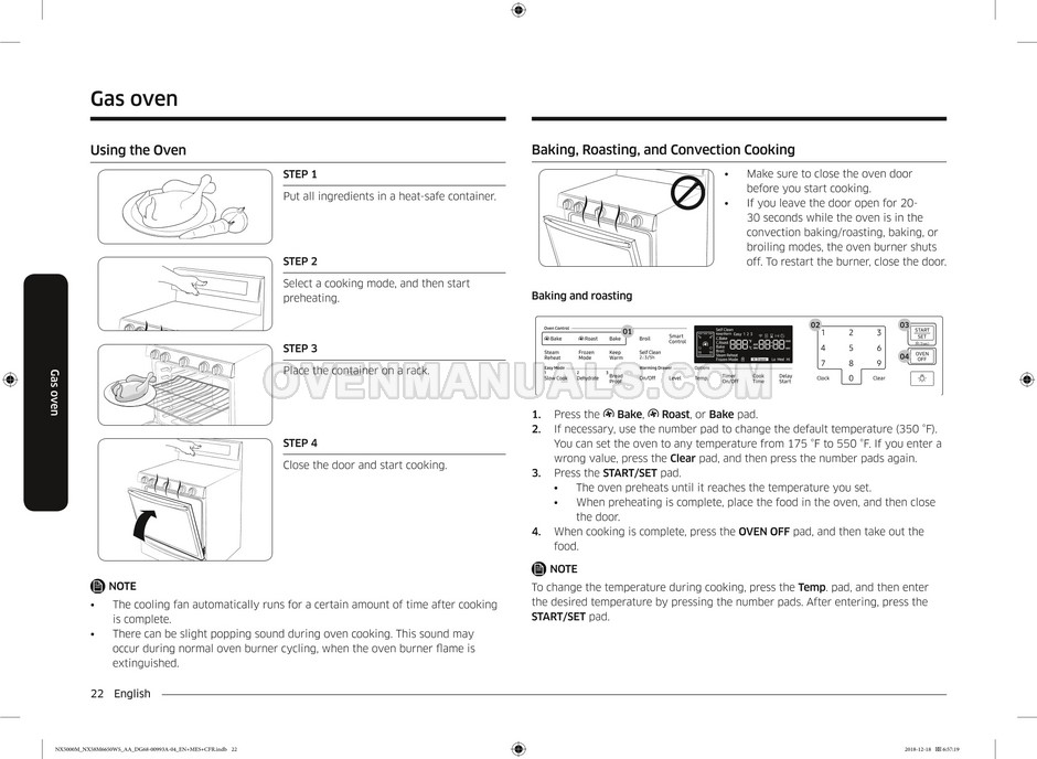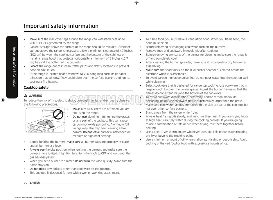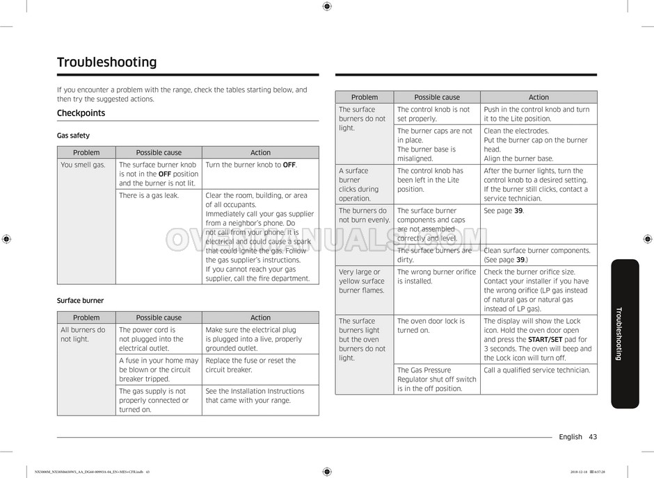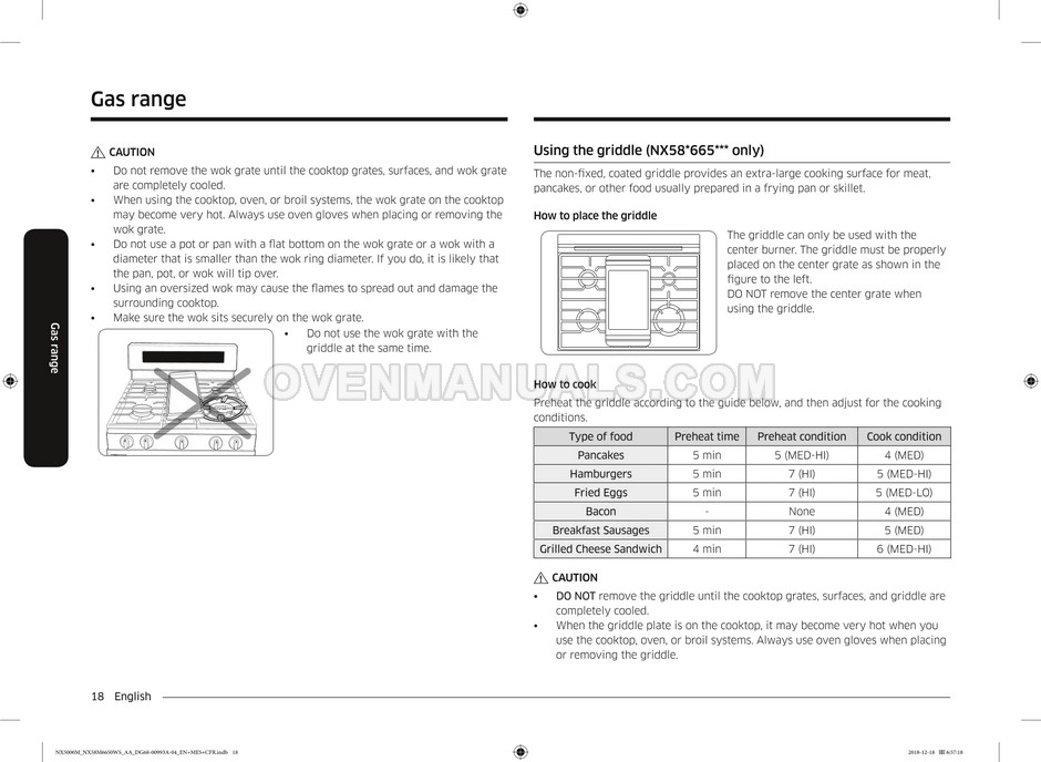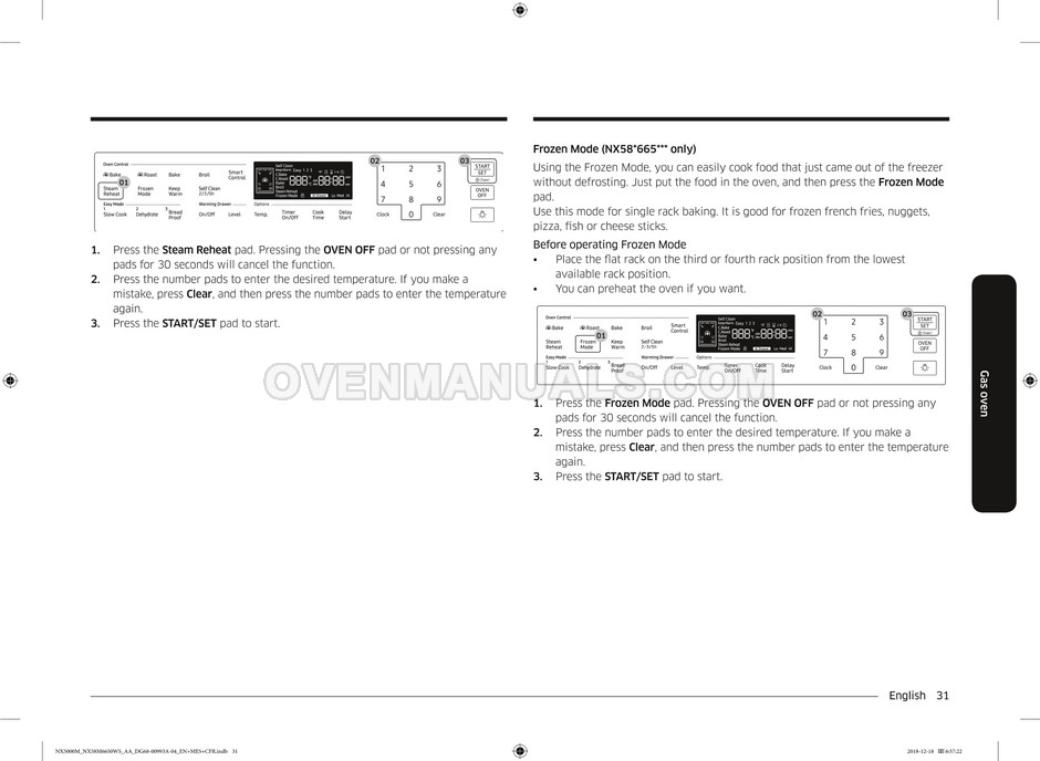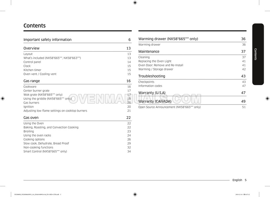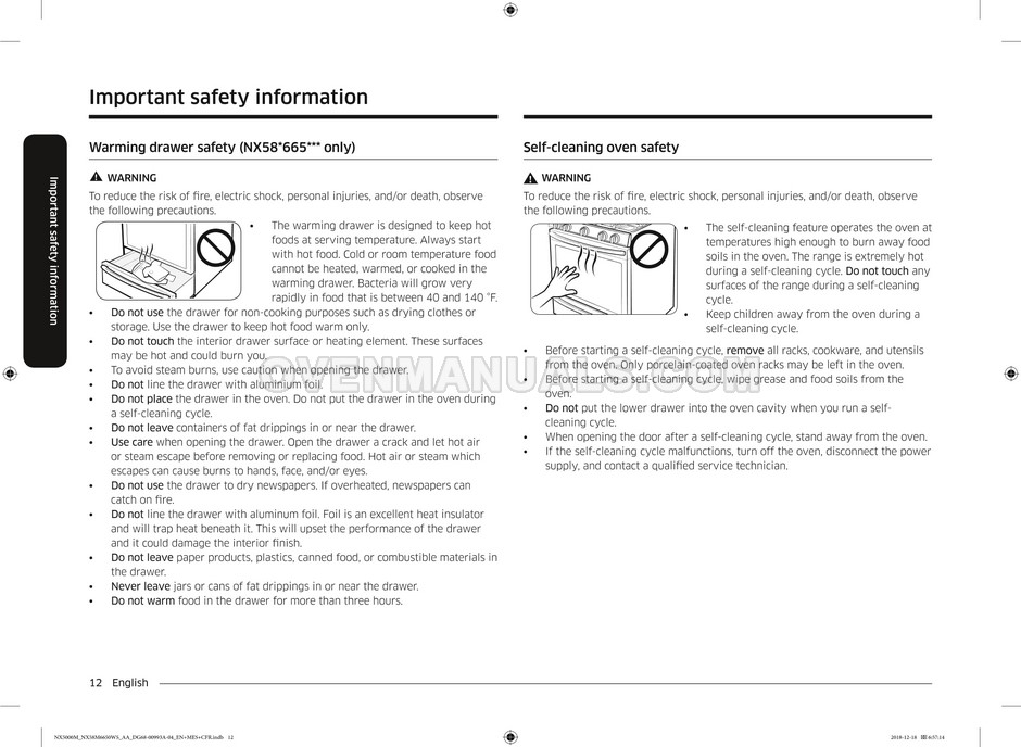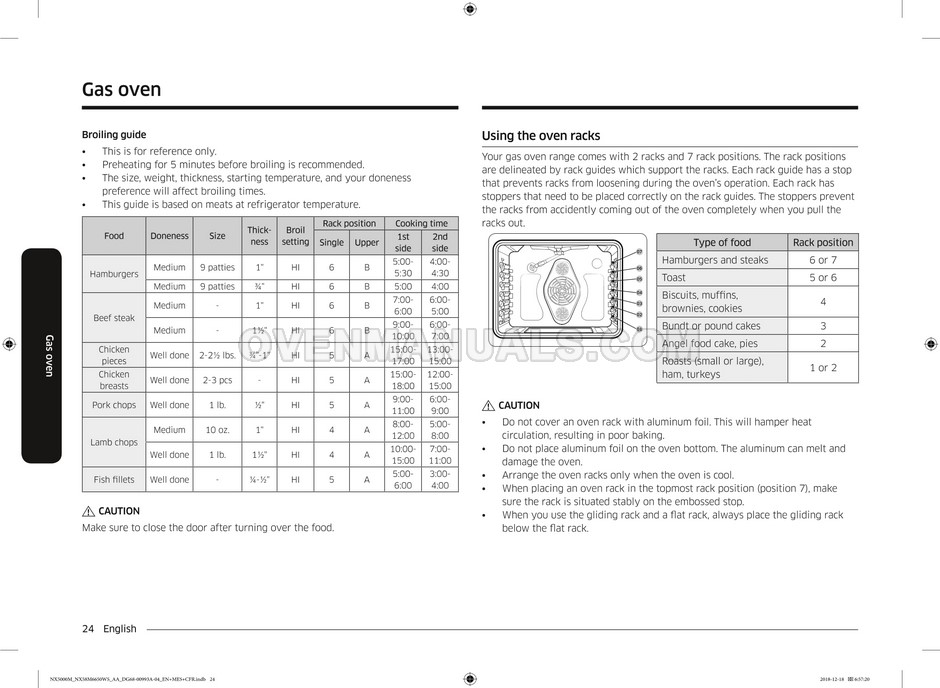 The user manual for 30 inch freestanding gas range with True Convection, dual power burner and steam reheat describes the operating modes, connection and maintenance requirements. Follow the manufacturer's recommendations and Samsung NX58M6650WS range will remain great kitchen appliance for a long.