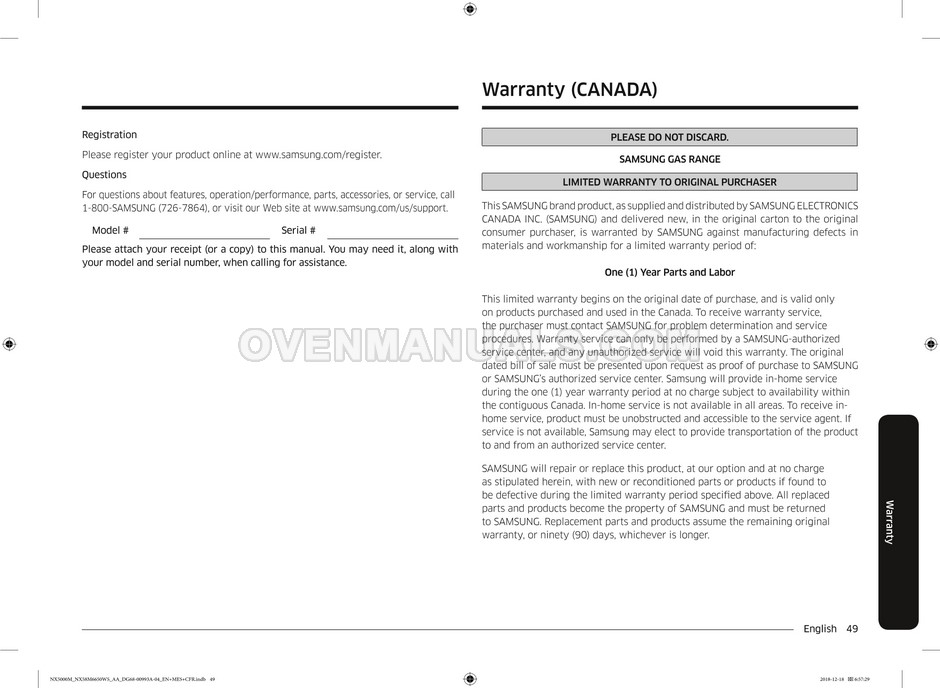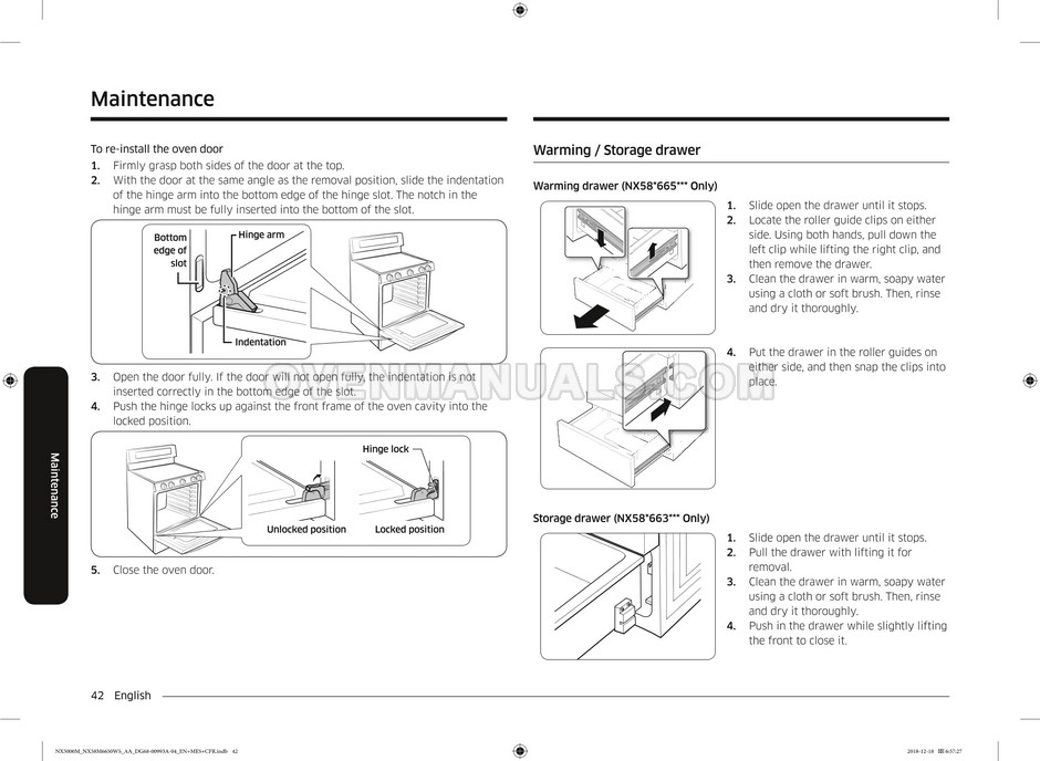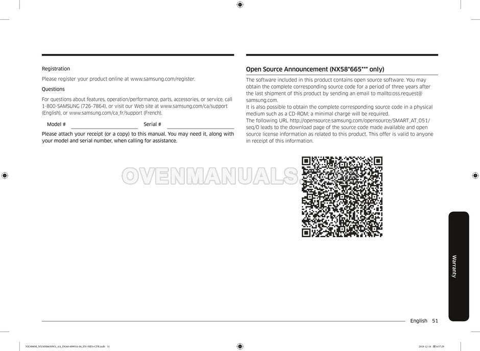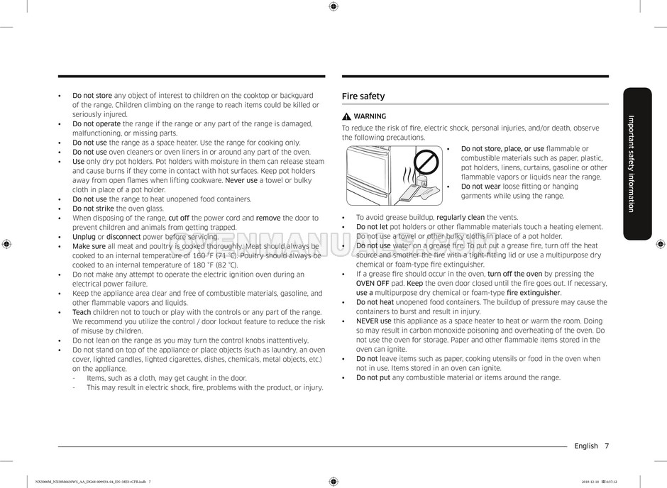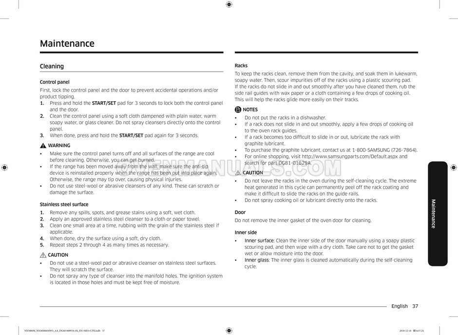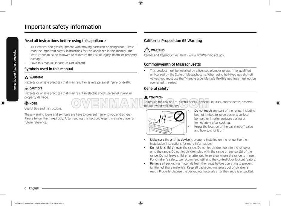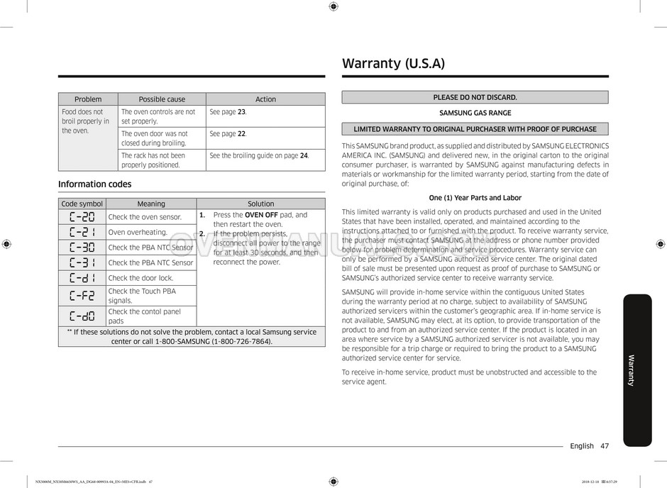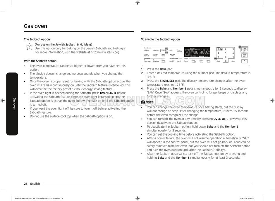 The user manual for 30 inch freestanding gas range with True Convection, dual power burner and steam reheat describes the operating modes, connection and maintenance requirements. Follow the manufacturer's recommendations and Samsung NX58M6650WS range will remain great kitchen appliance for a long.