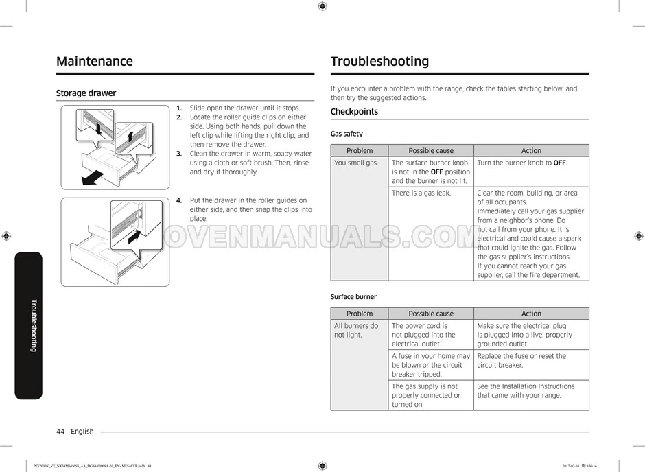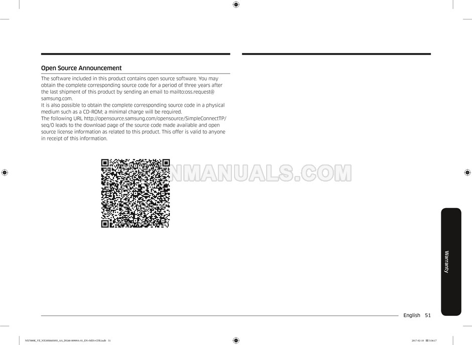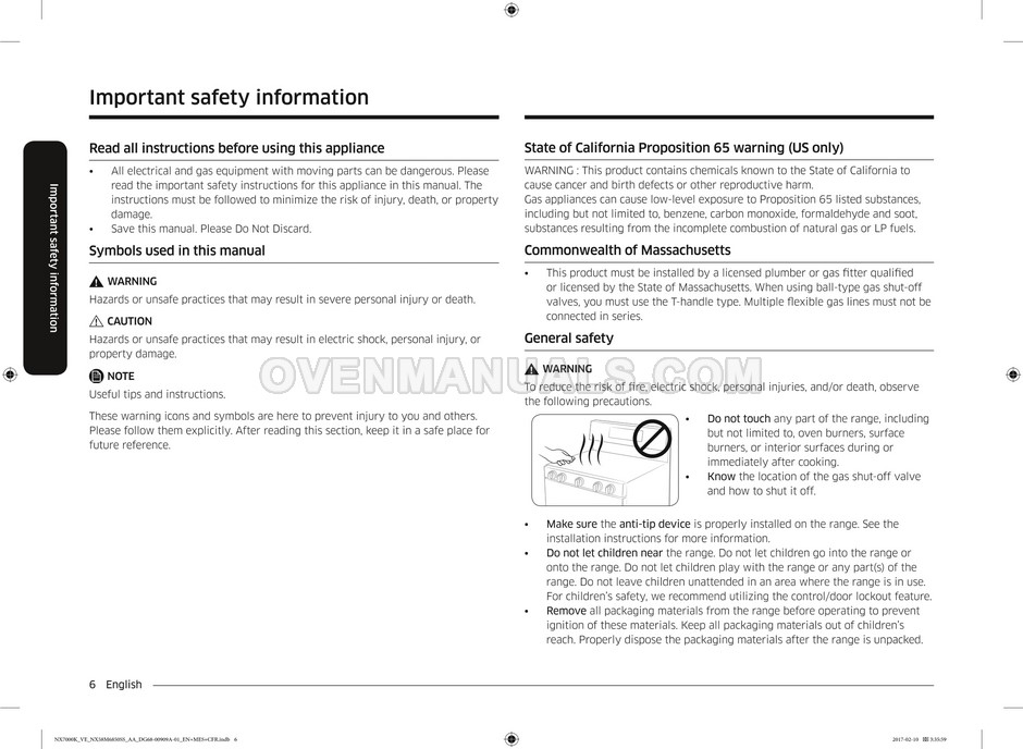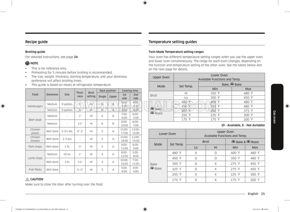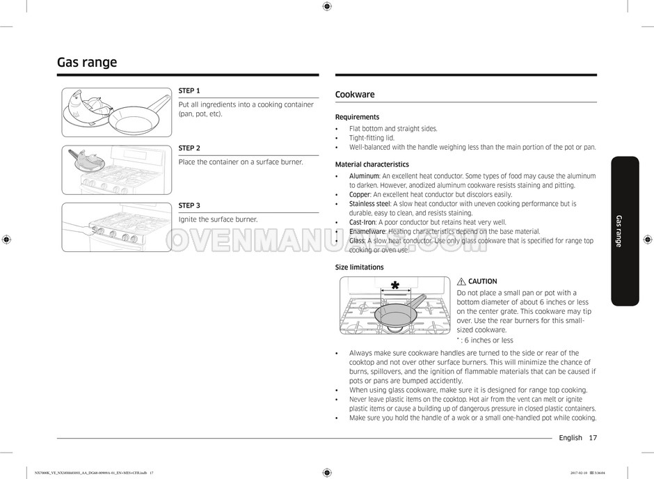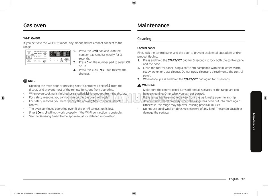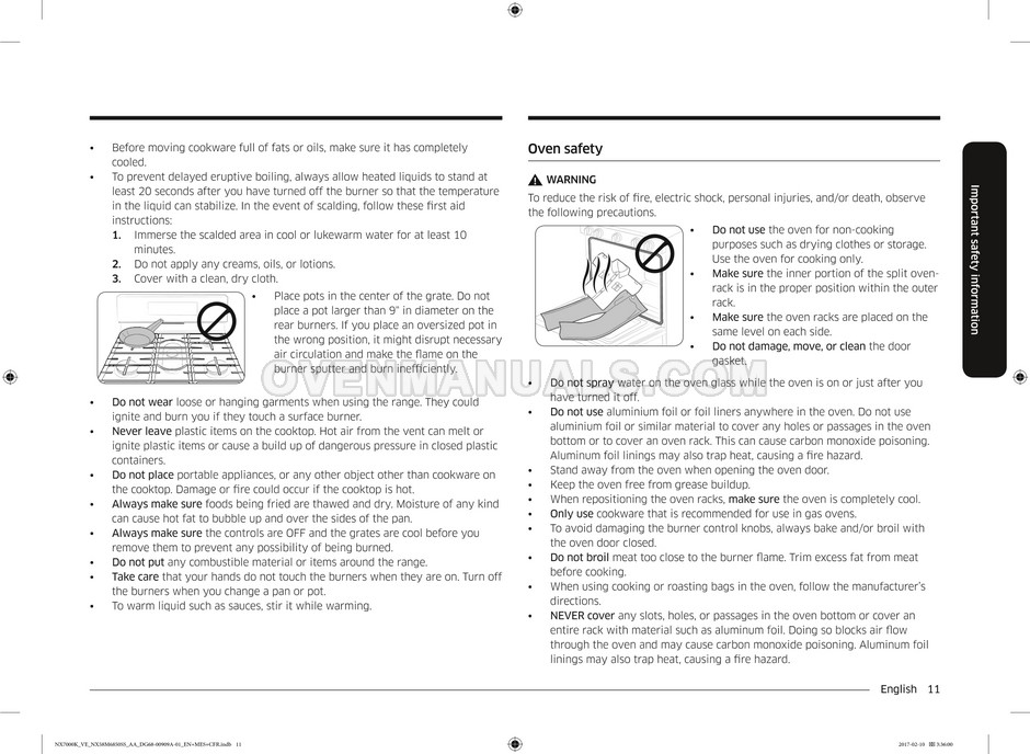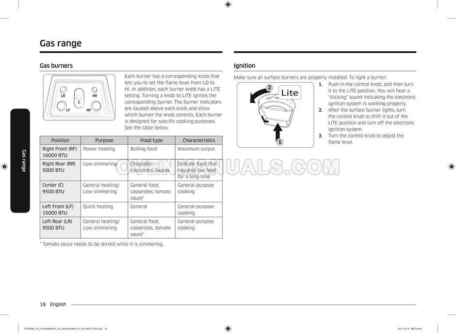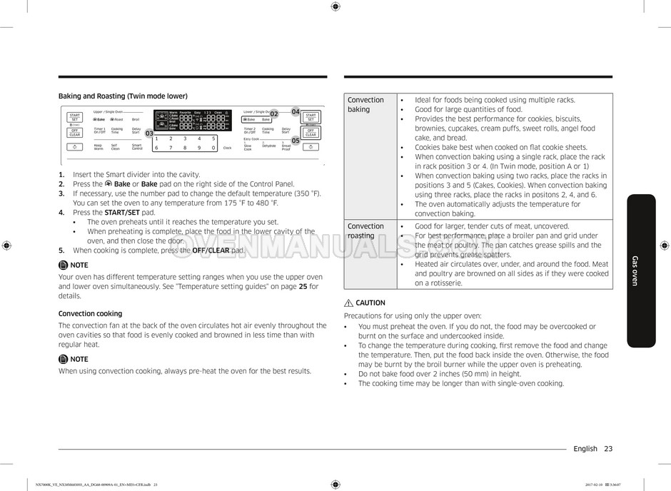 Read the manufacturer's recommendations for cooking with (NX58M6850) 30 inch dual door Flex Duo freestanding gas smart range with 5 sealed burners, 5.8 cu.ft. Dual Convection oven, storage drawer, self-clean. This 52 page user manual describes all operating modes and features of the Samsung NX58M6850SG kitchen range.