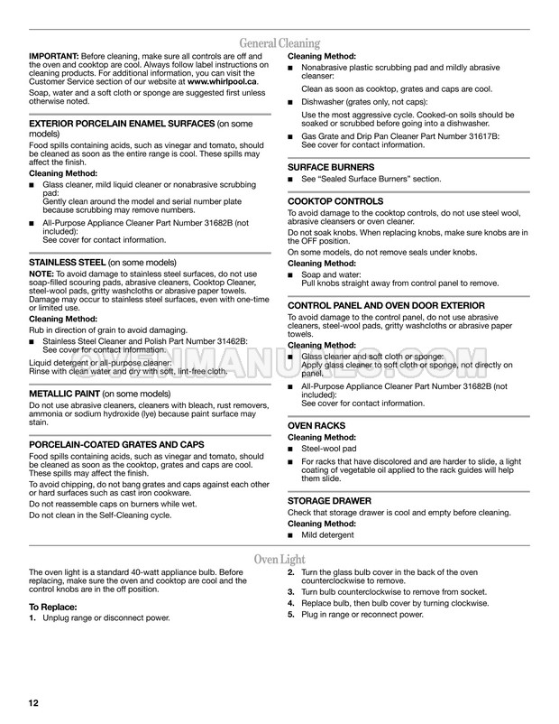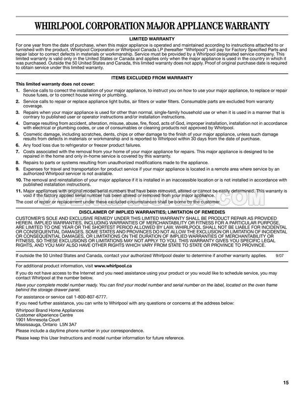 Whirlpool GFG461LVS User Instructions