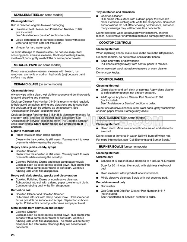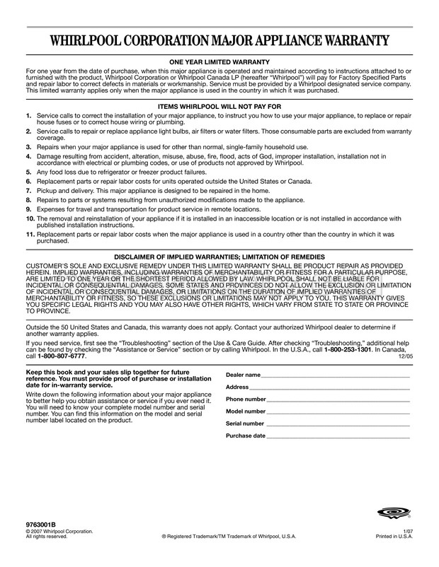 Use all the features of 30 inch freestanding electric range with 4 coiled elements, 4.8 cu. ft. self clean oven, balanced bake system, storage drawer and electronic controls. Read the use & care guide with recommendations from Whirlpool for cooking with the RF263LXTQ3 range on 32 pages.