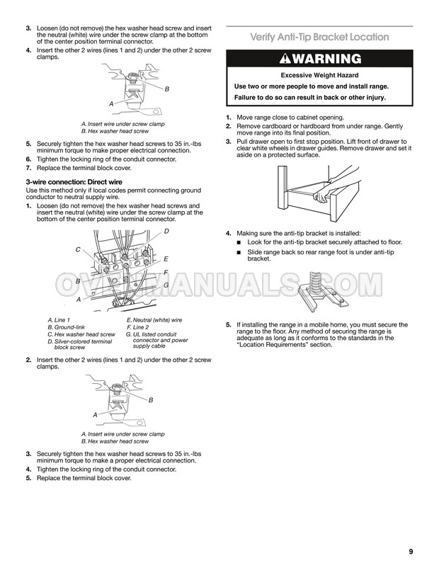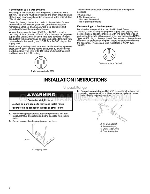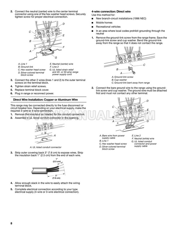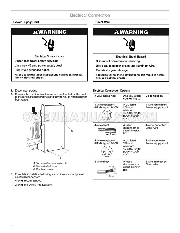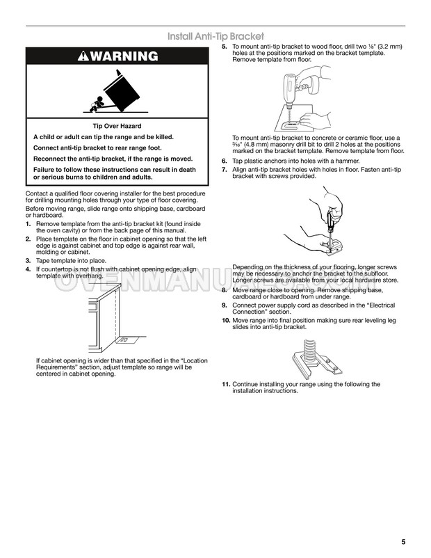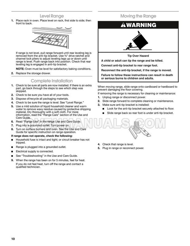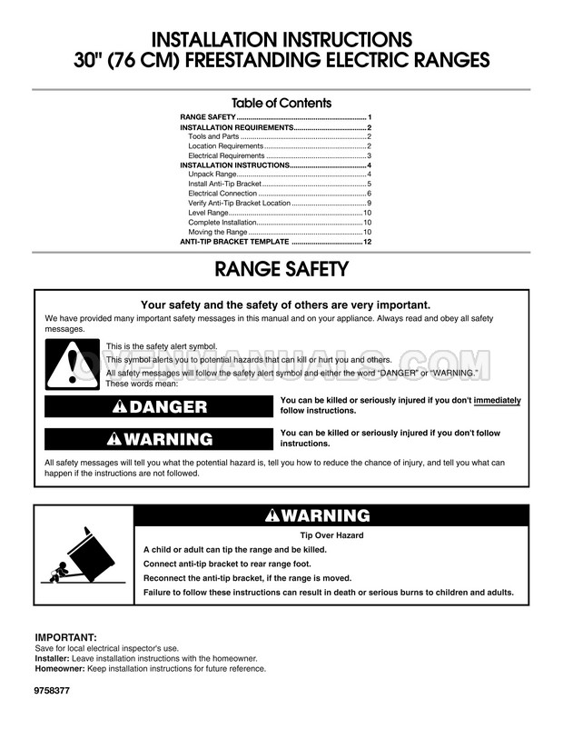 Read the installation instructions after purchase to ensure that the Whirlpool RF364PXPQ range serves for a long time without breakdowns. This document contains all the necessary information for the correct installation and connection of a 30 inch freestanding electric range with super capacity 4.65 cu. ft. oven and auto self-clean.
