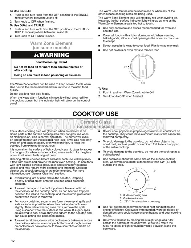 Your Whirlpool hob will last a long time if you follow the manufacturer's recommendations for use, maintenance and troubleshooting, as described in the user instructions. Use all the functions and possibilities of a 30 inch electric cooktop with 4 element burners, ceramic glass surface, FlexHeat, dishwasher-safe knobs and ADA compliant to cook easily and with pleasure.