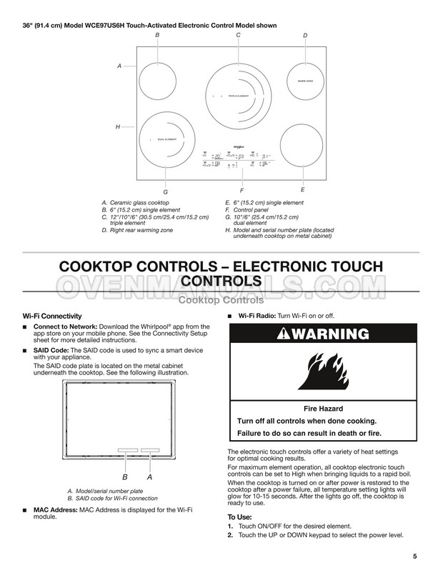 Whirlpool WCE55US0HB User Instructions