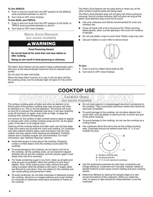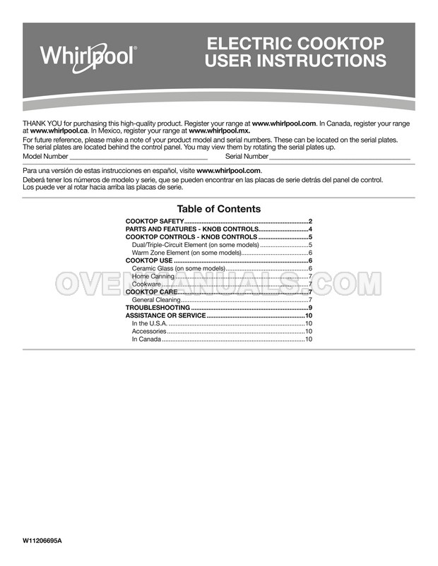 This document contains recommendations for the correct adjustment and use of a 36-inch electric easy-wipe ceramic glass cooktop with dual radiant element, hot surface indicator light. Read the user instructions before you start cooking, so that you can use all the features of the Whirlpool WCE55US6HB hob.