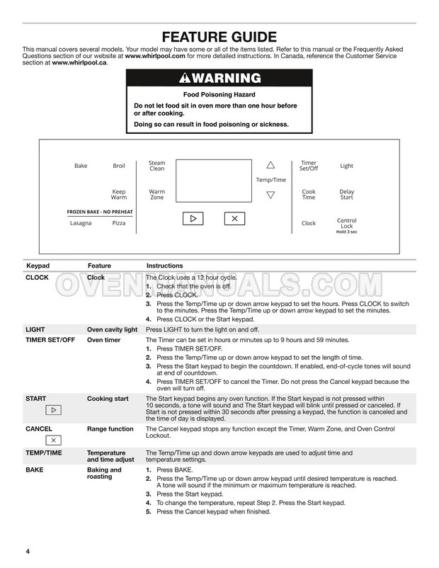 Use all the features of 30 inch electric range with 5.3 cu. ft. oven capacity, control lock, Warm Zone element. Read the user instructions with recommendations from Whirlpool for cooking with the WFE505W0JZ range on 19 pages.